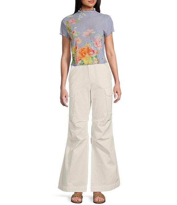 C&V Chelsea & Violet Ruffle Neck Short Sleeve Floral Mesh Top