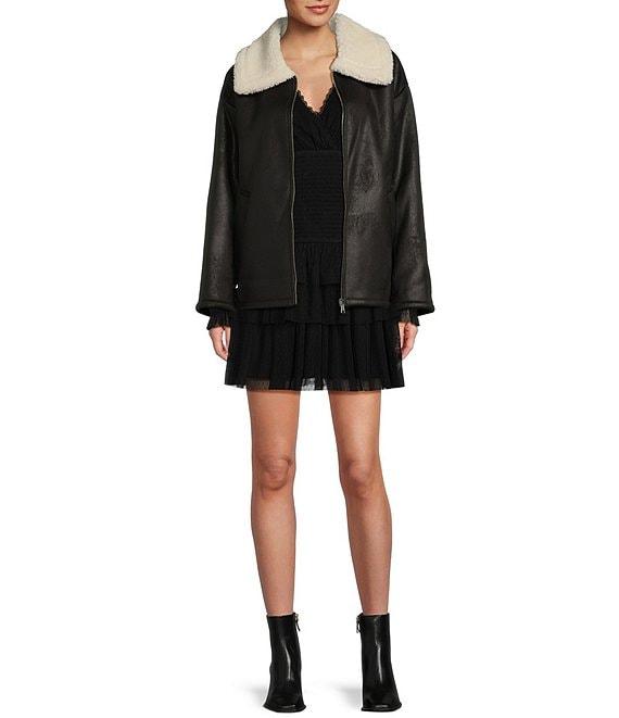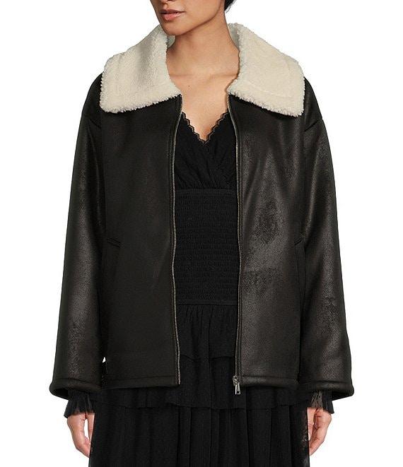 C&V Chelsea & Violet Zip-Front Sherpa Collar & Faux Suede Jacket