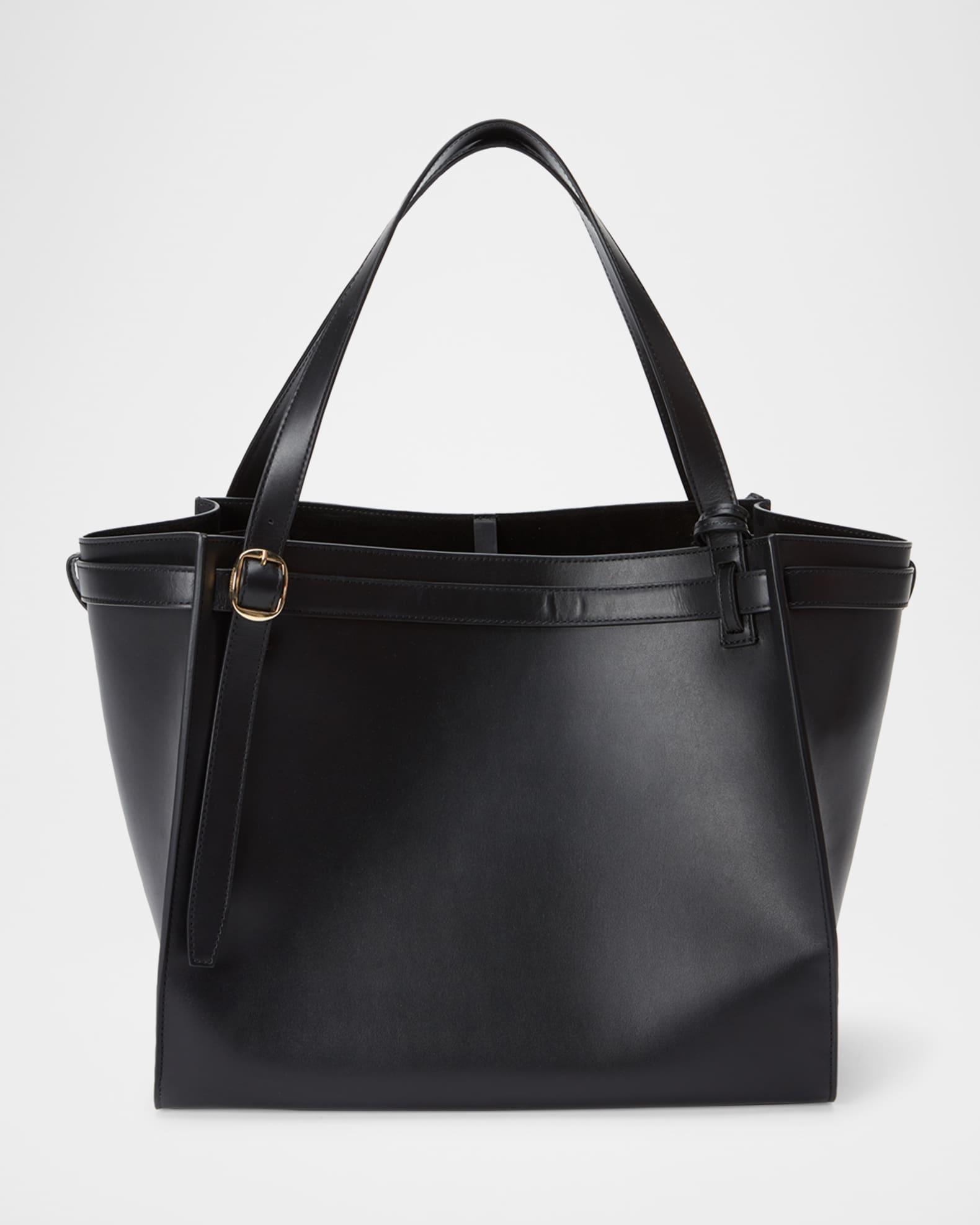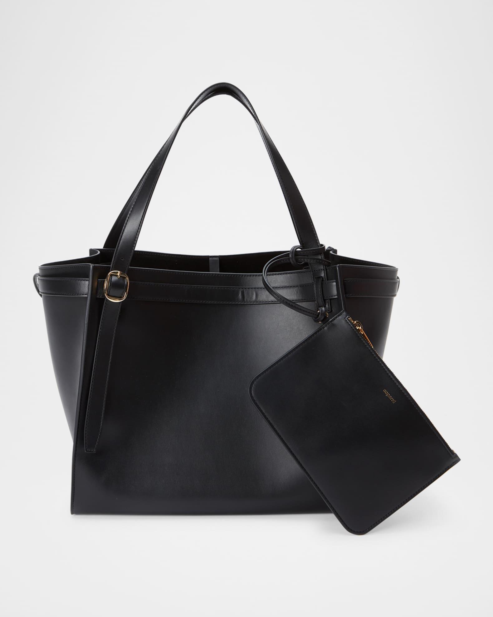 Coperni "Cabas" tote bag in leather, designed with origami-effect folds to create a geometrically constructed style Adjustable shoulder straps Open top with strap closure Interior, removable zip-top pouch Lining: Polyurethane Approx. 9"H x 15.6"W x 7.8"D Made in Italy