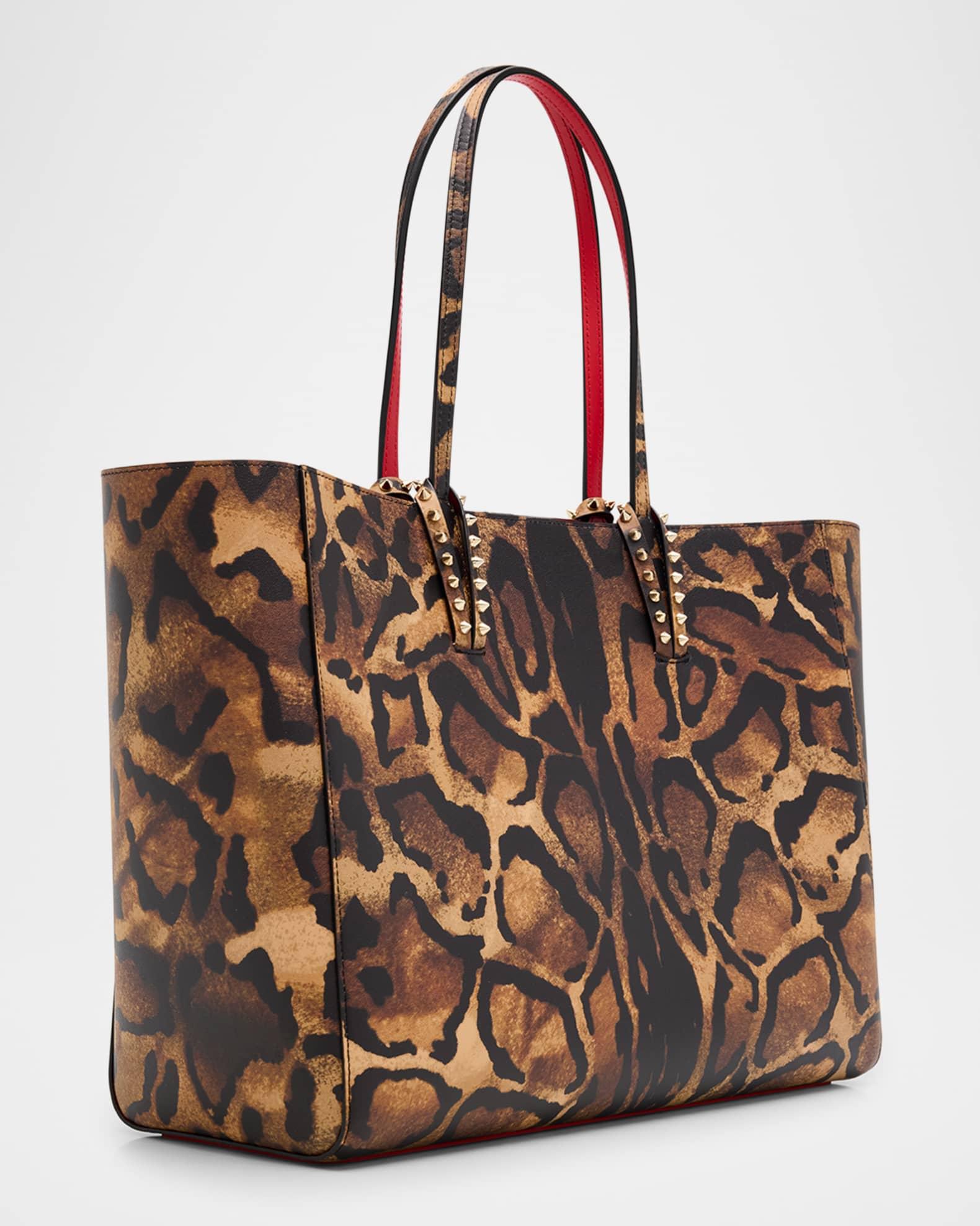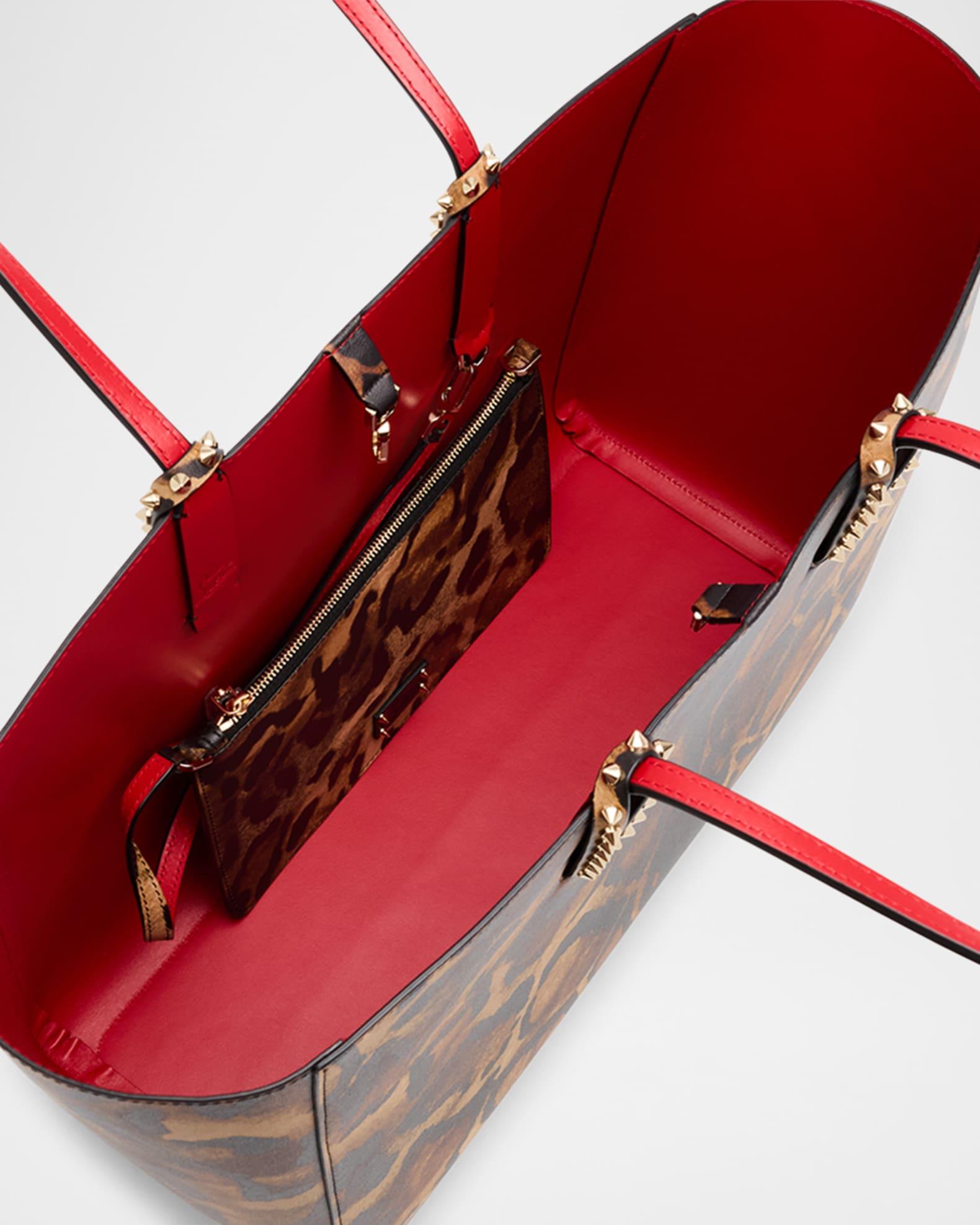 The "Cabata" tote bag from Christian Louboutin is crafted of supple calf leather with signature spike accents for an edgy touch. The eye-catching Bengal animal print evokes a wild sense of animal instincts, adding energy to the standout piece. Flat shoulder straps Open top with internal strap clasp closure Interior, removable zip-top pouch Signature red leather interior Logo-embossed red leather bottom Approx. 11.4"H x 15.4"W x 6.3"D Made in Italy
