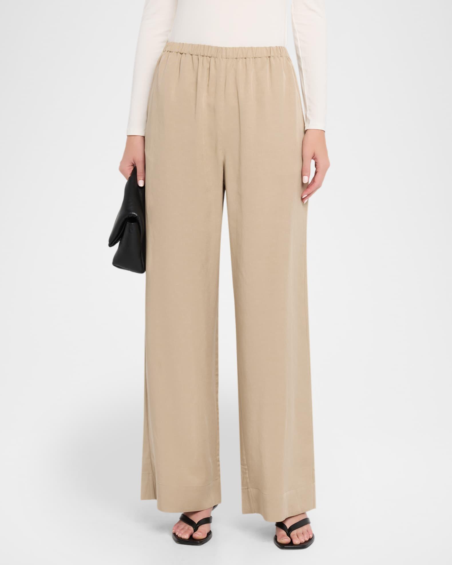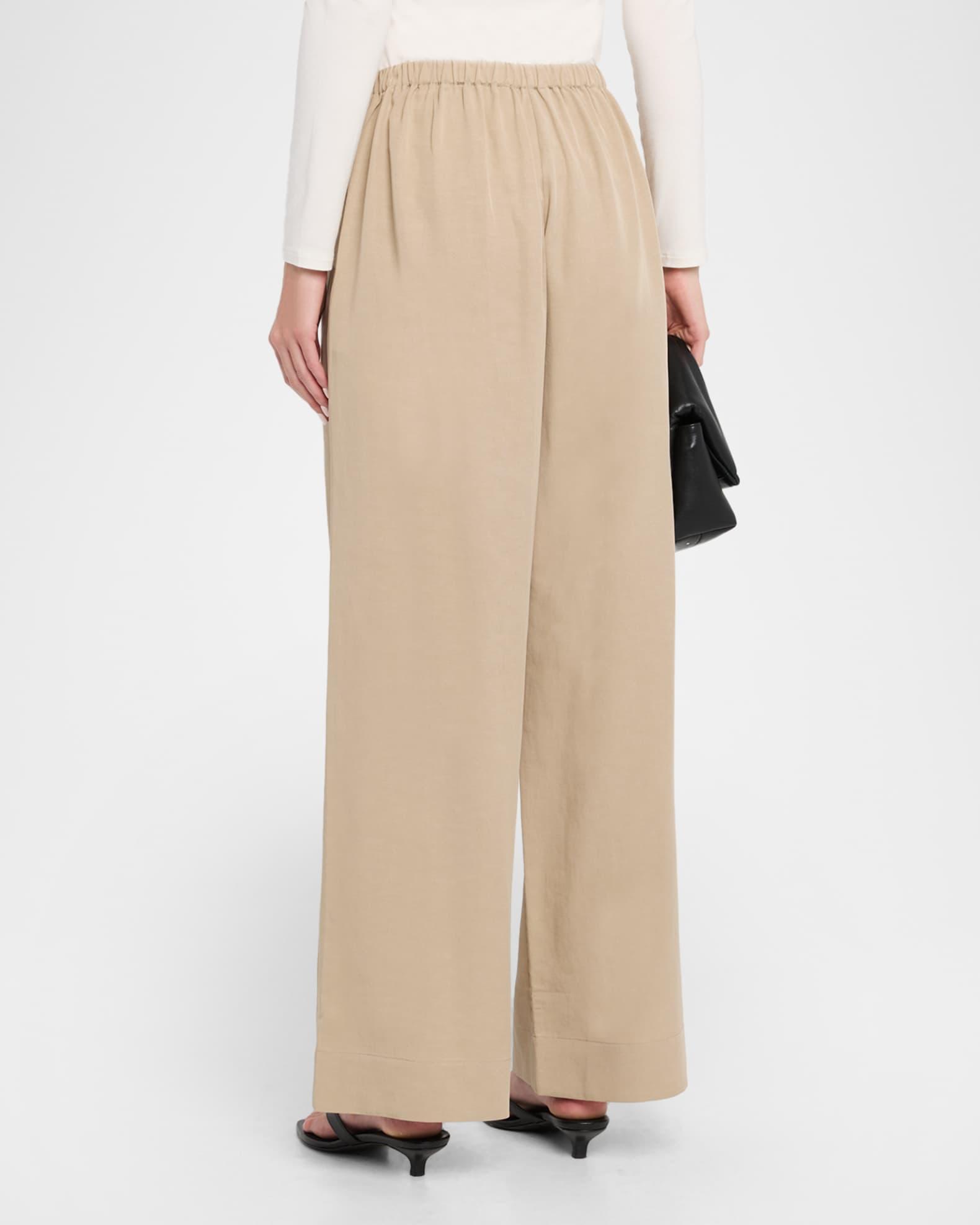 By Malene Birger "Cabello" trousers are designed with a wide-leg fit inspired by the classic cargo pants structure Approx. measurements: 11" rise; 29" inseam Mid-rise sits high on the hips Elasticized waistband Pleated front On-seam pockets Full length Wide legs Pull-on style Lyocell/linen Dry clean Imported