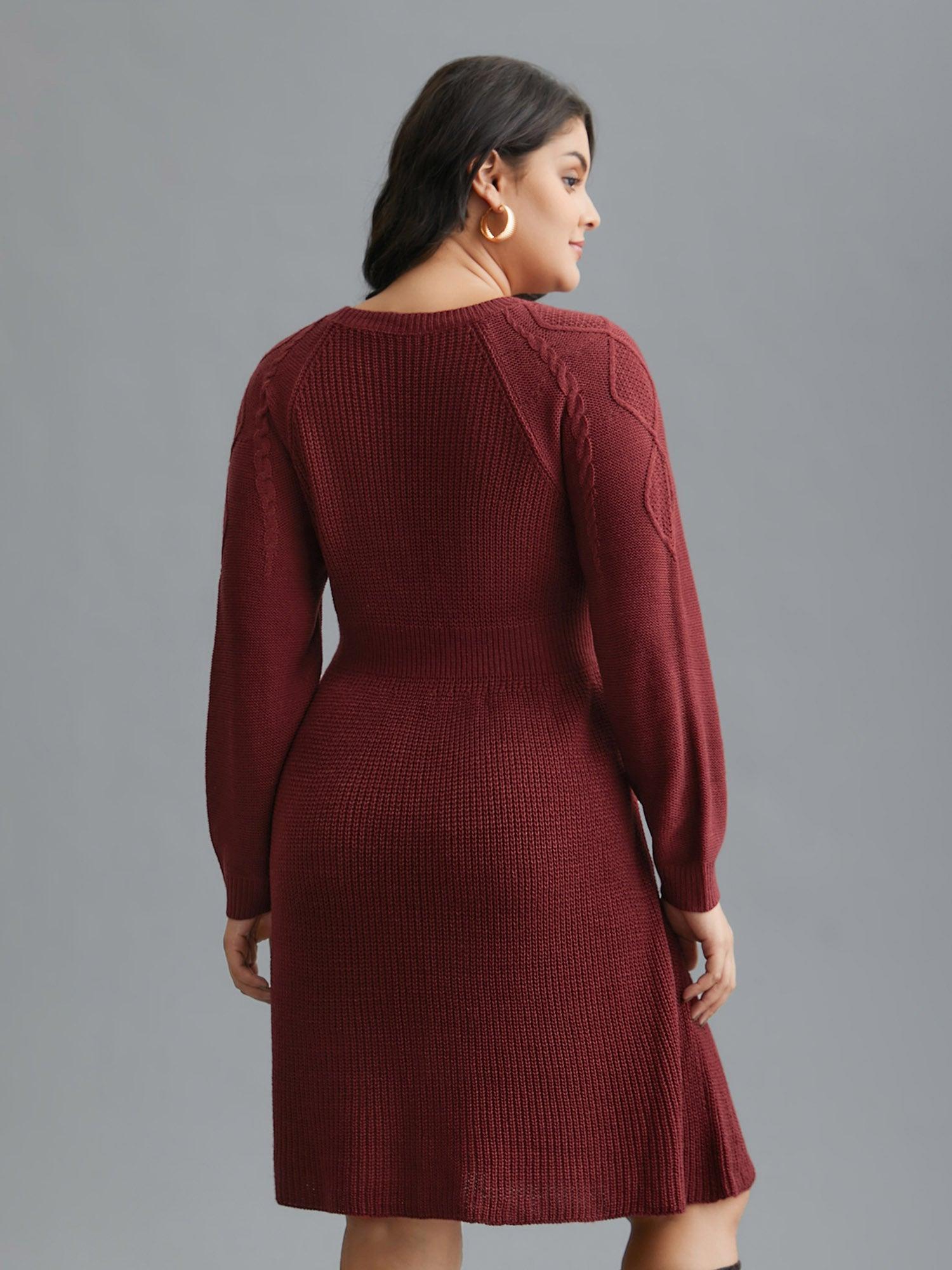 Shop Cable Knit Raglan Sleeve Midi Sweater Dress now and redefine your style with confidence at BloomChic. Tailored for mid and plus-size women. This trendy Dresses Women, sizes 10-30. Season:Winter;Color:Burgundy;Style:Casual;Neckline:Round Neck;Sleeve Type:Raglan sleeve;Prints:Non;Details:Cable Knit, Texture;Pocket:No-pocket;Belt:No-belt;Closure Type:Non