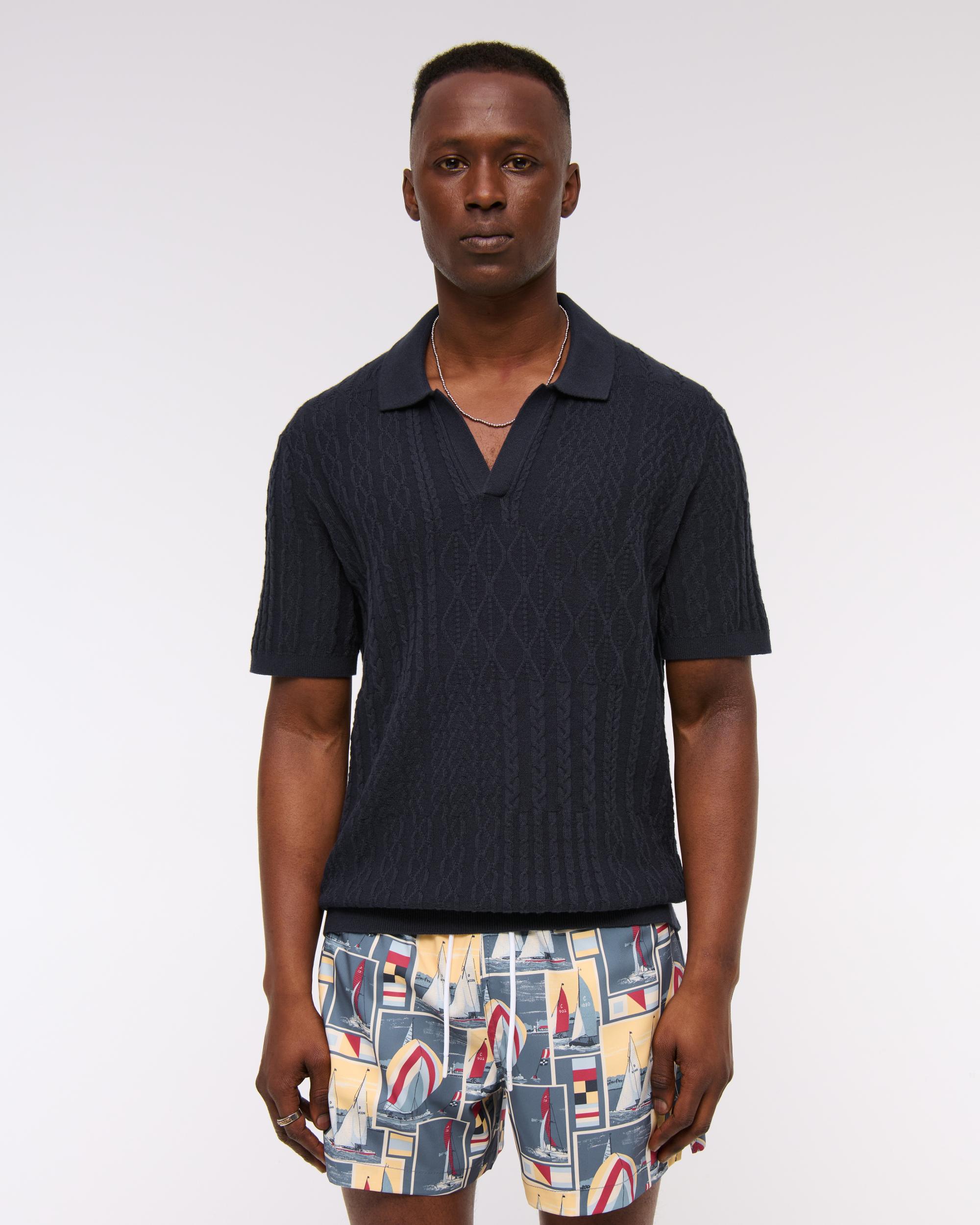 Cable Patchwork Johnny Collar Sweater Polo
