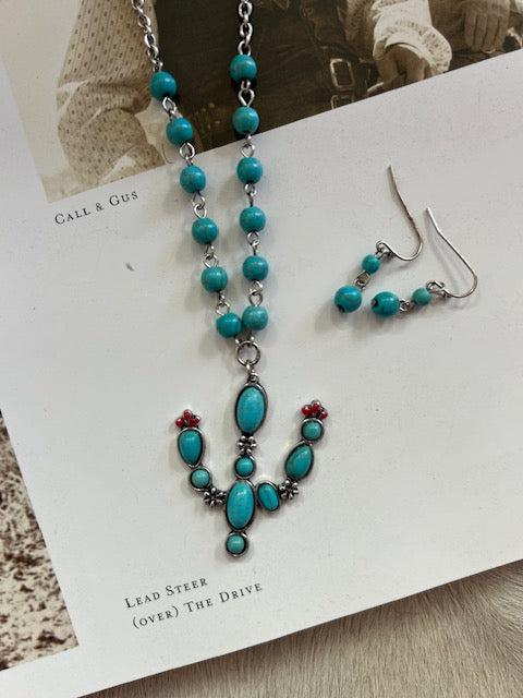 Cactus Pendant Gemstone Necklace Set