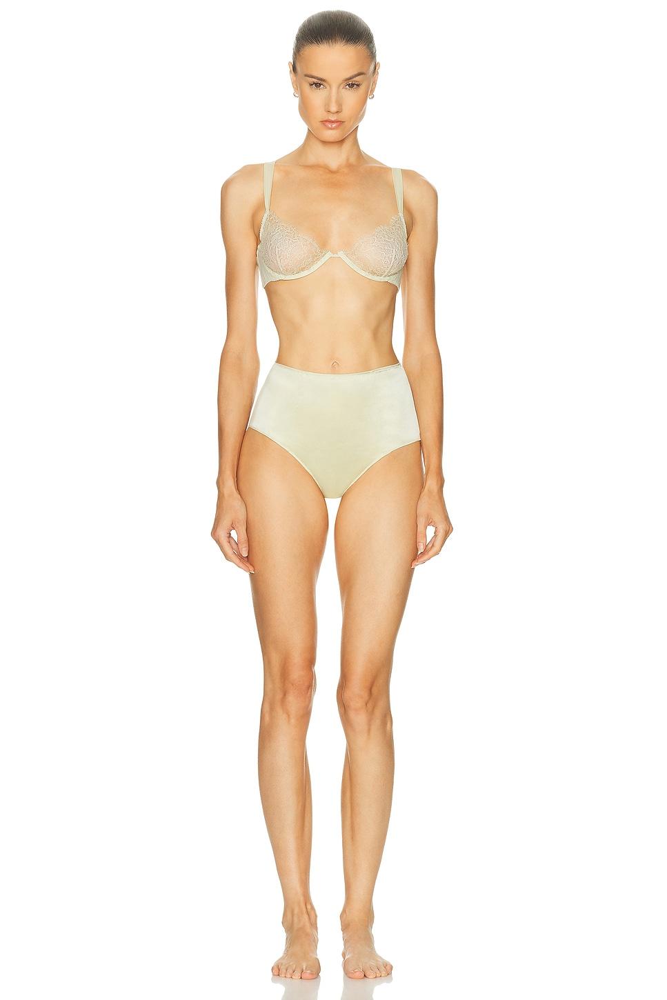 braSelf 1: 54% viscose, 46% polyamideSelf 2: 100% silk / Hand wash / Back hook and eye clasp closure / Unpadded cups with underwire / Adjustable shoulder straps / Lace fabric / Item not sold as a set / Made in US / Our Style No. KSSF-WI109 / Manufacturer Style No. C001BR049 / Model is wearing size 34C.