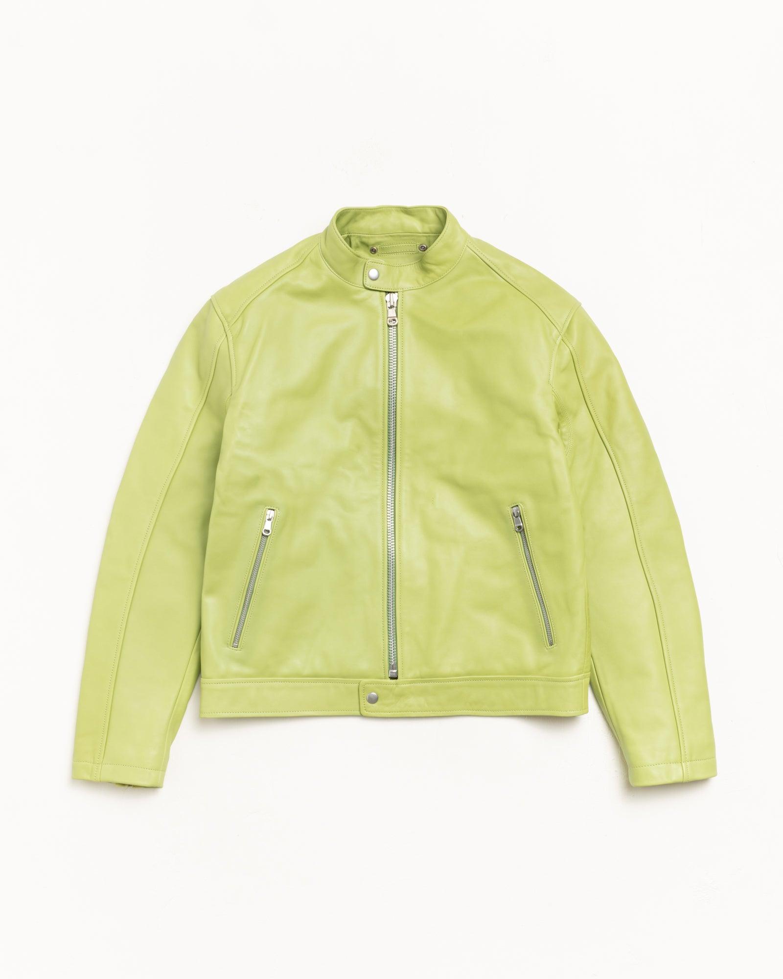 Classic fit racer jacket in heavy weight leather. Features an articulated sleeve and quilted lining. - Stand collar with snap closure - YKK zip closure - Interior storm guard - Metal eyelet vents under arm - Zipped side pockets and sleeve gussets - Interior welt pocket - Locker loop - Classic fit - Articulated sleeves - Fully lined - Unisex - Main material: 100% leather - Lining: 100% polyester - Imported