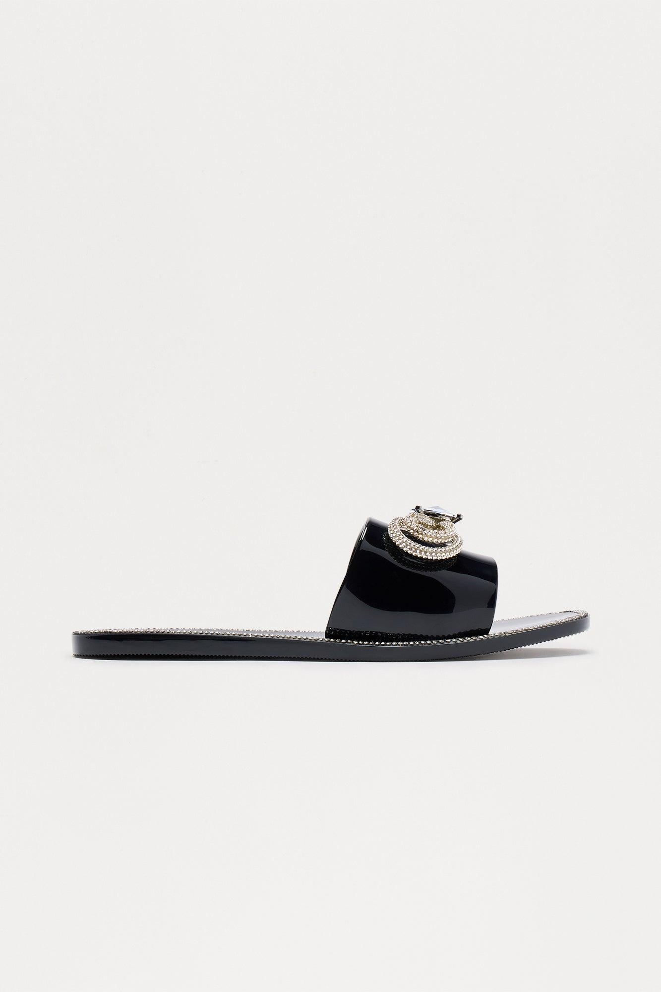 Womens Crystal Bow Patent Leather Slide Sandals