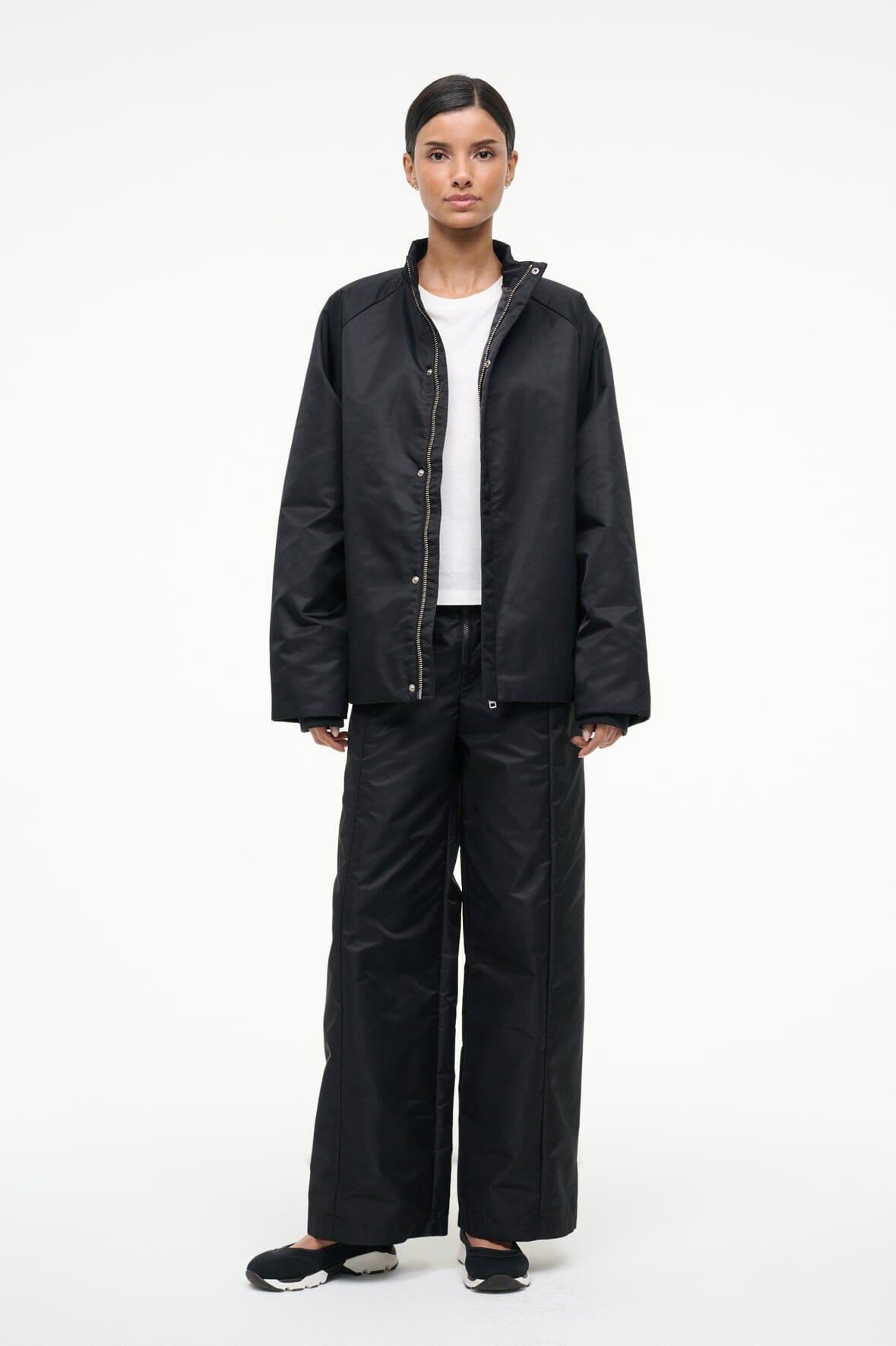 The Cal Jacket is a zip-front nylon bomber jacket. This style features a zip and snap front and has pockets. This style can be paired with the Taurus Short or the Sosa Skirt for a matching set.