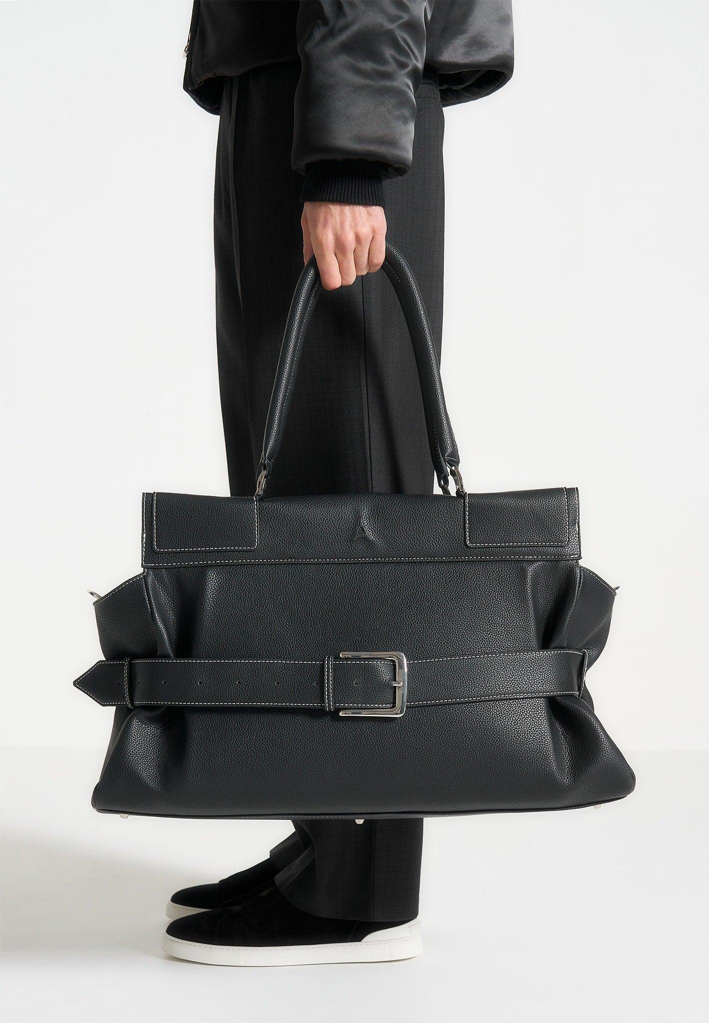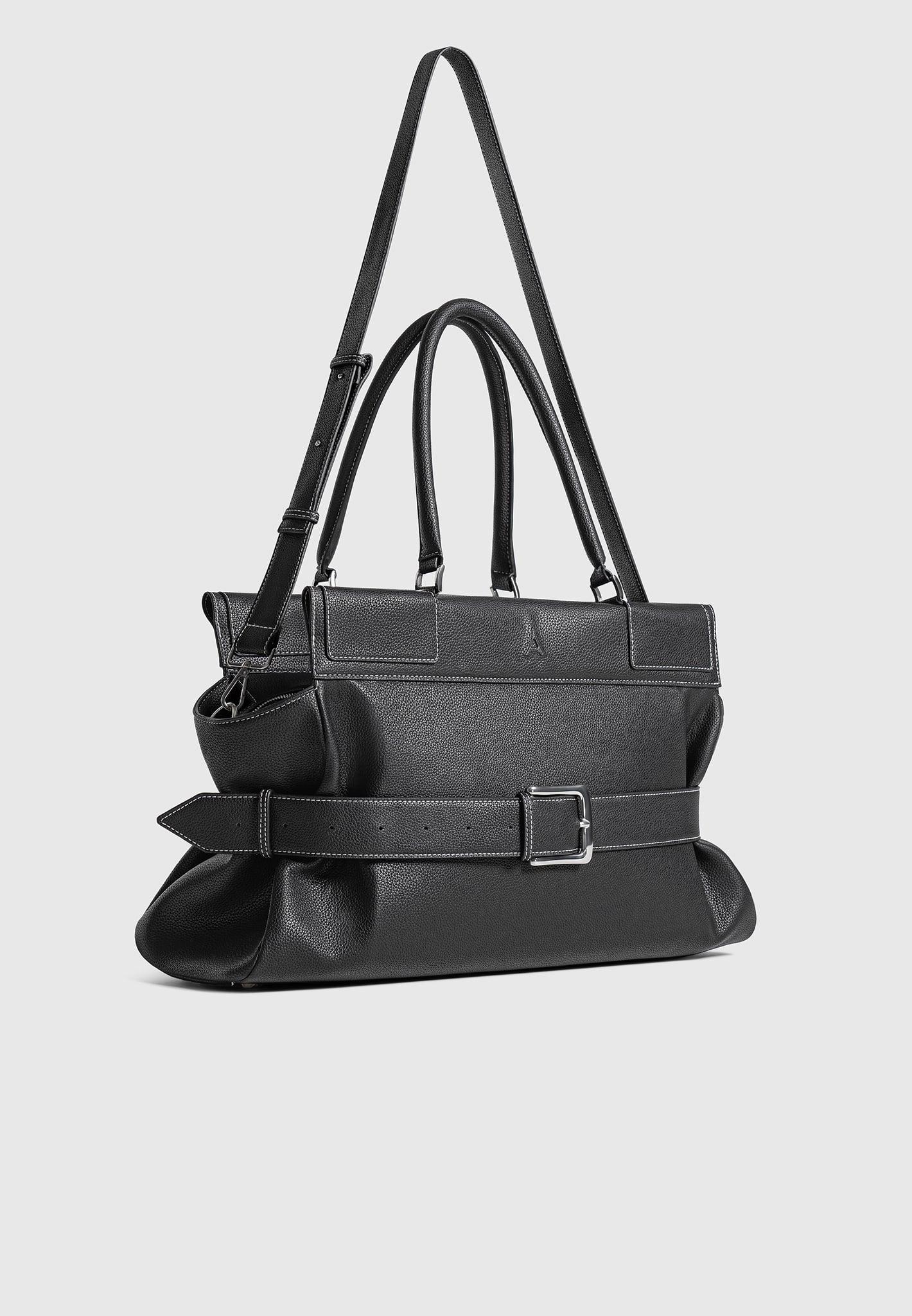 Expertly designed for convenience and style, the Calais Oversized Bag in black boasts a buckle feature and adjustable shoulder strap for versatile wear. Its sleek and minimalist design makes this unisex bag a timeless accessory for any gender. Crafted with high-quality vegan leather and intricate topstitching for added durability, this bag is the perfect choice for any on-the-go individual. Travel Bag Silhouette Adjustable Buckle Feature High-Quality Vegan Leather Fabric Topstitching Detailing Detachable Strap Feature Zip Opening Spacious Design Internal Pocket Unisex Debossed Manière De Voir Eiffel Fabric: 50% PU, 50% Polyester / 97% Cotton, 3% ElastaneAlways check the care label for wash instructions.