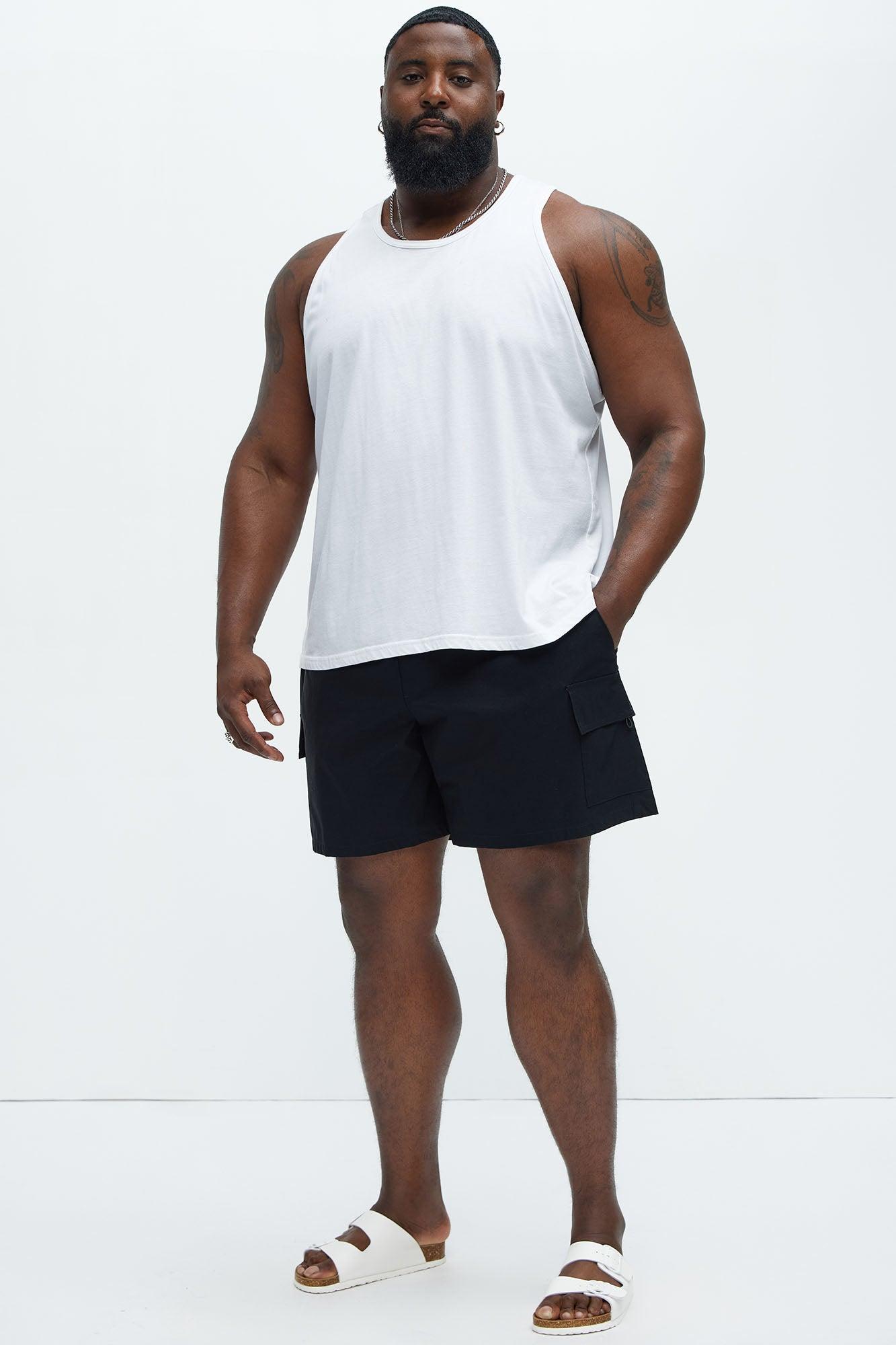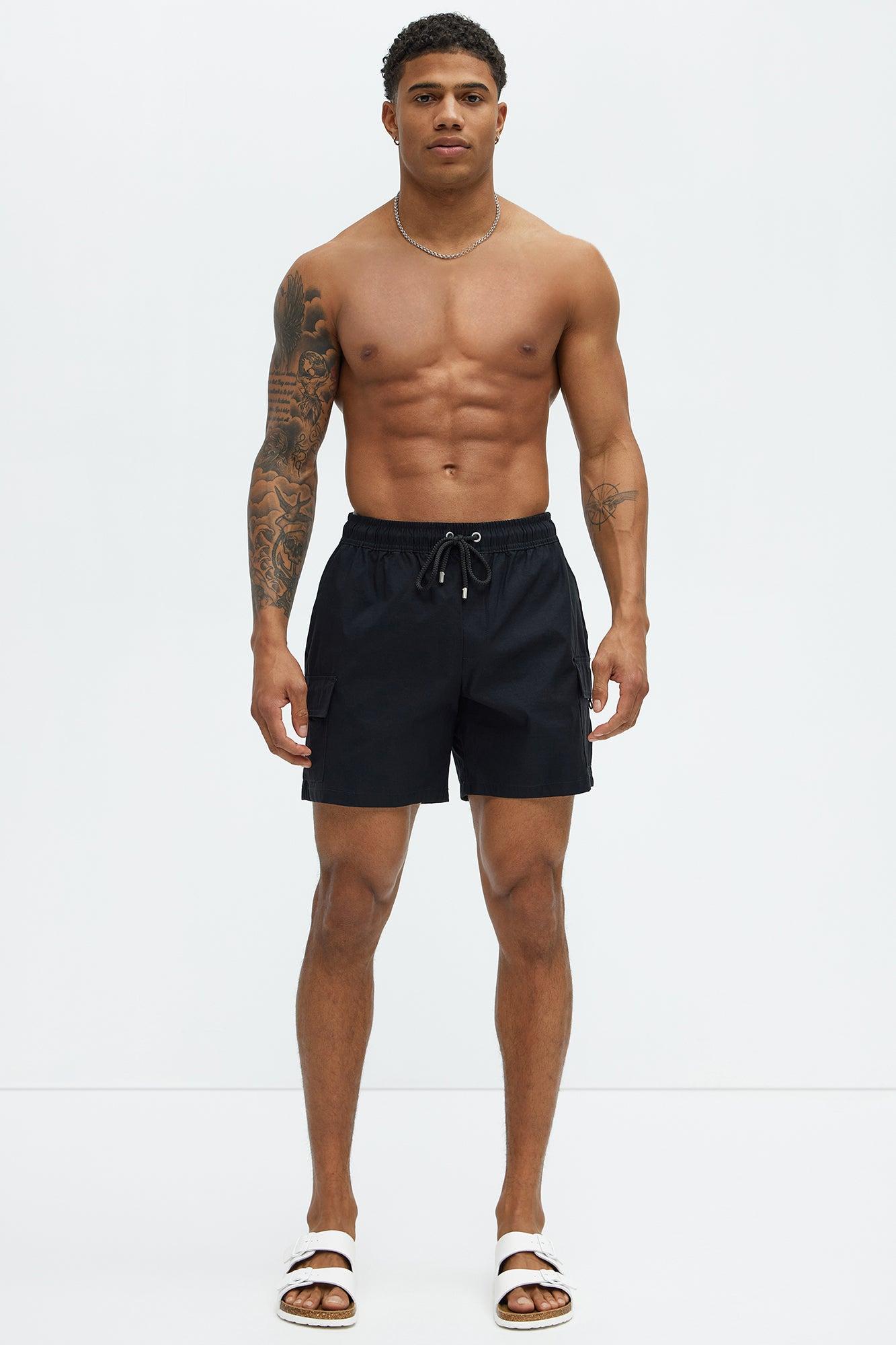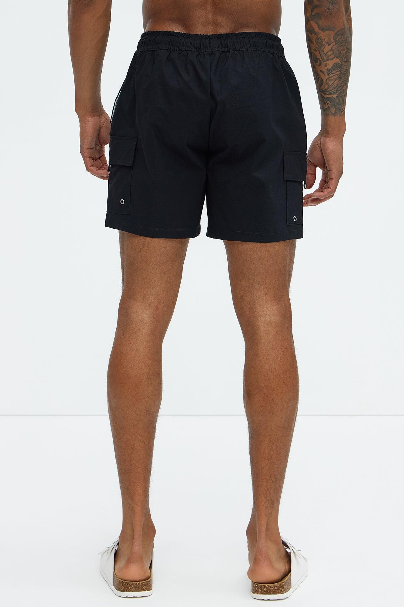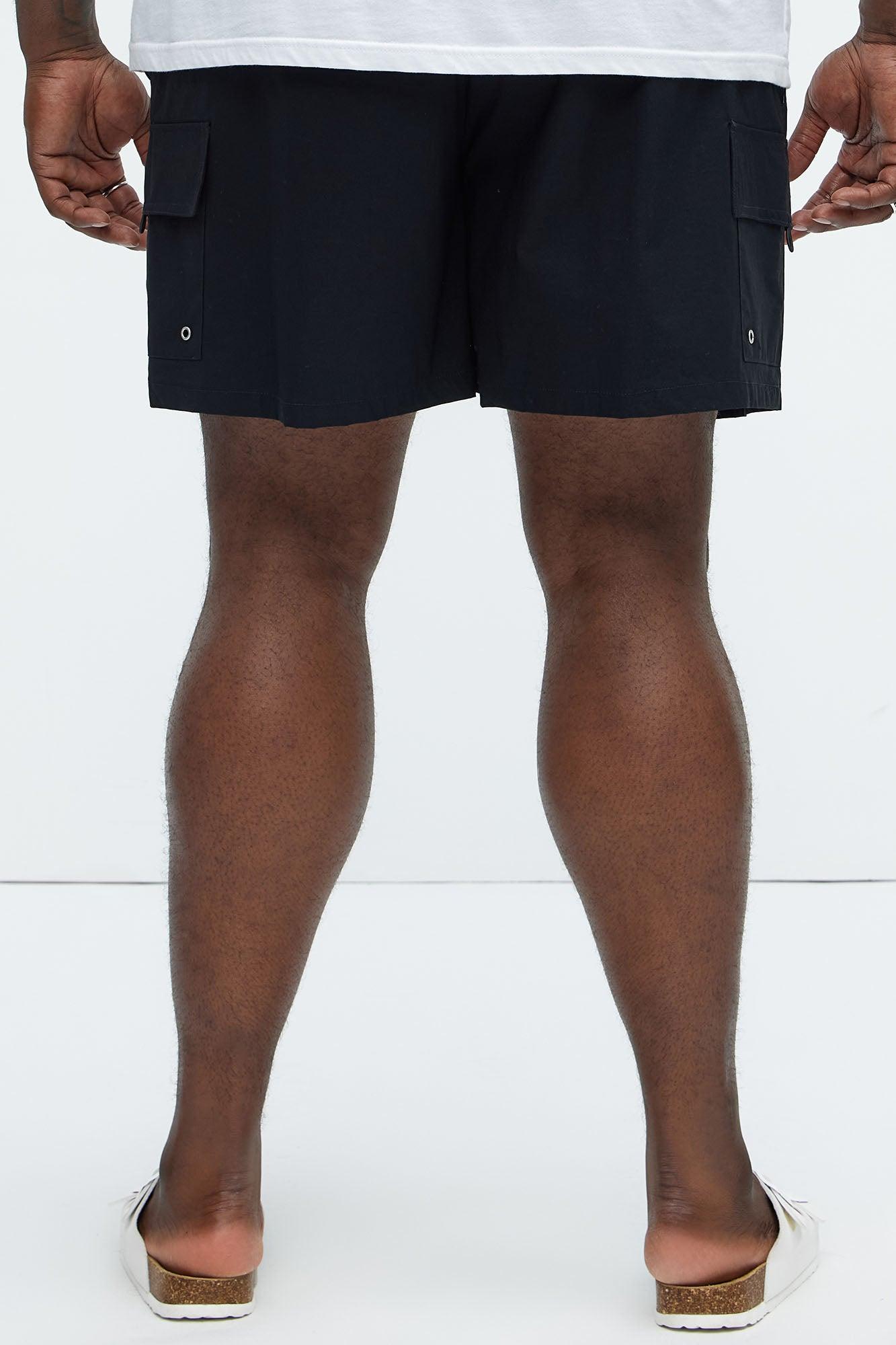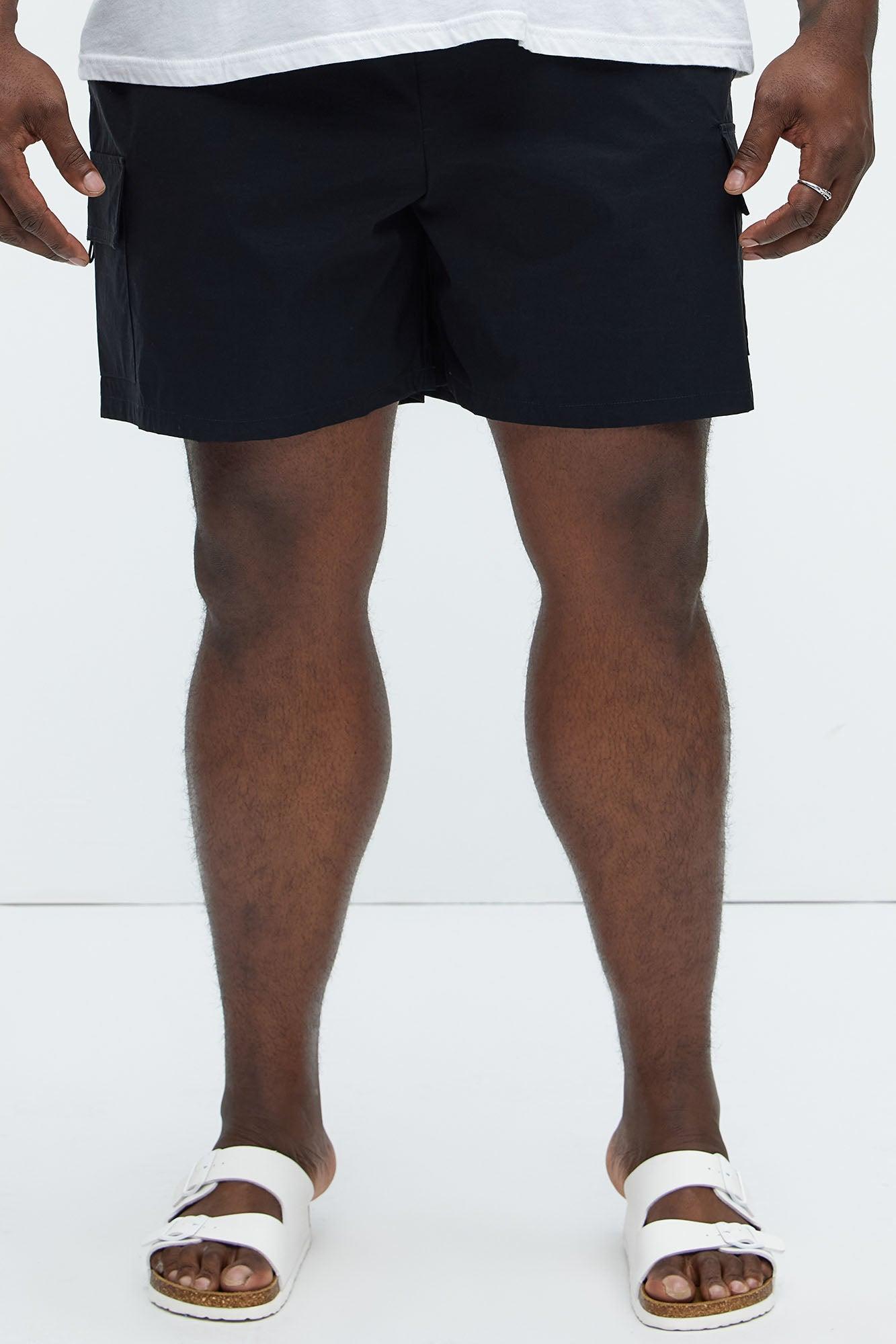 Available In Black. 7" Inseam Elastic Waist Drawstring Mesh Lined Side Hand Pockets Side Cargo Pockets Shell: 92% Nylon, 8% Spandex Lining: 100% Nylon Final Sale Imported California Proposition 65 WARNING: Cancer and Reproductive Harm - www.P65Warnings.ca.gov.