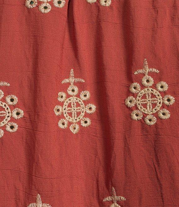 Calessa Embroidered Medallion Print Split V-Neck Bracelet Length Sleeve Button Front Tunic