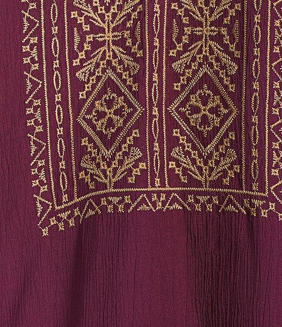Calessa Embroidered Split V-Neck Long Sleeve Tunic