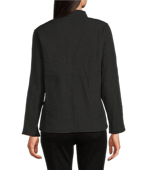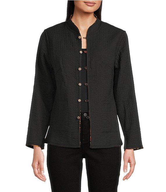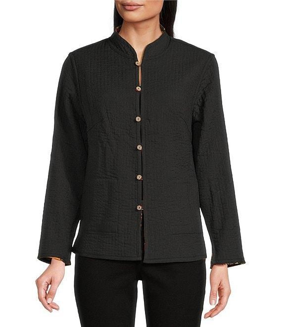 Calessa Festive Patchwork Stand Collar Long Sleeve Button-Front Reversible Shirt Jacket