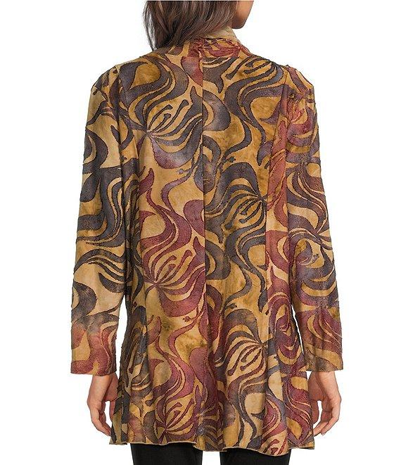 Calessa Knit Burnout Tie-Dye Print Long Sleeve Open-Front Cardigan