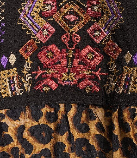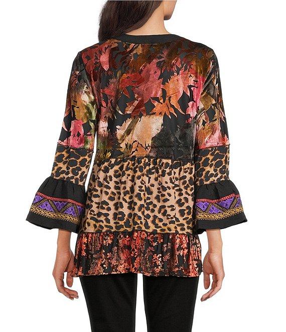Calessa Knit Mixed Media Patchwork V-Neck 3/4 Sleeve Tunic