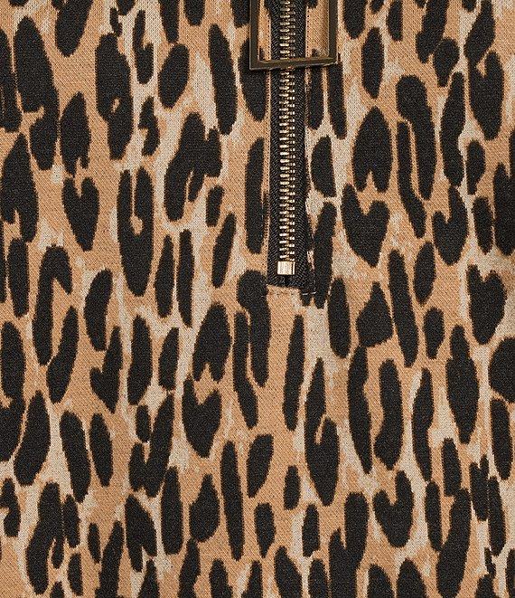 From Calessa Petite, this tunic features: Yarn-dye textured knit fabrication Wire collar Roll-tab sleeves Jacquard animal print Side pockets Straight hem Pullover construction Quarter zip closure Approx. 27.5" length Polyester/spandex Hand wash/line dry Imported.