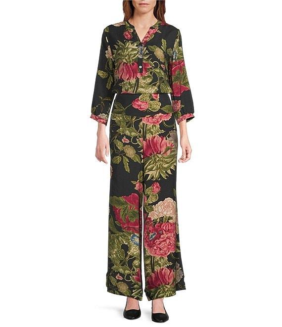 Calessa Petite Size Autumn Garden Banded Split V-Neck 3/4 Sleeve Coordinating Tunic