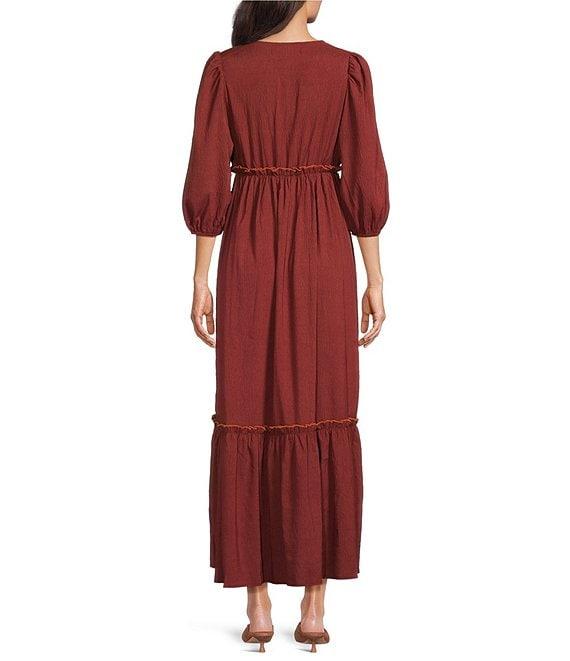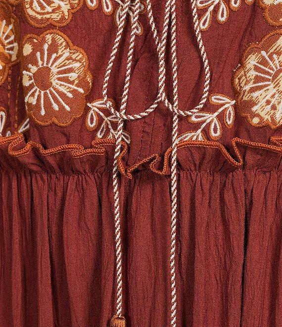 From Calessa Petite, this dress features: Woven fabrication A-line silhouette V-neckline with tassel tie detail 3/4 puff sleeves Embroidered motif Comfort fit Tiered skirt Pullover construction Approx. 48" in length Polyester Hand wash or gentle cycle on cold; lay flat to dry Imported.