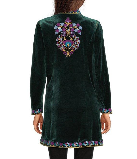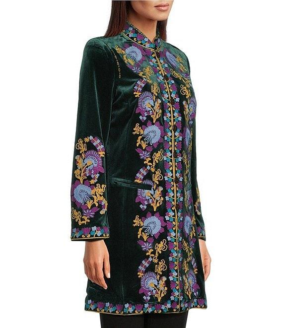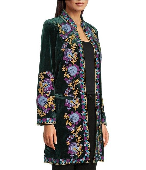 Calessa Velvet Floral Embroidered Stand Collar Long Sleeve Jacket