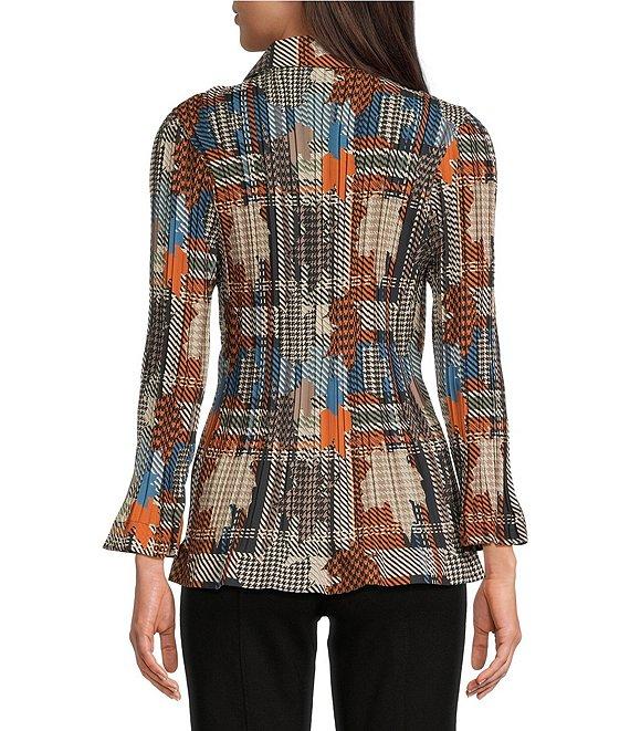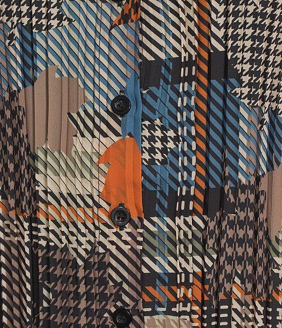 Calessa Petite Size Patchwork Check Print Woven Point Collar Long Sleeve Button-Front Flute Pleated Tunic