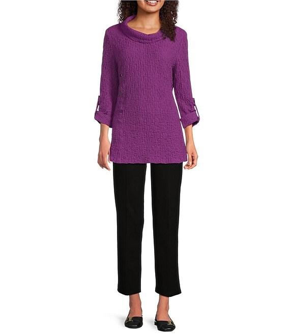 Calessa Petite Size Textured Bubble Knit Cowl Neck 3/4 Sleeve Tunic