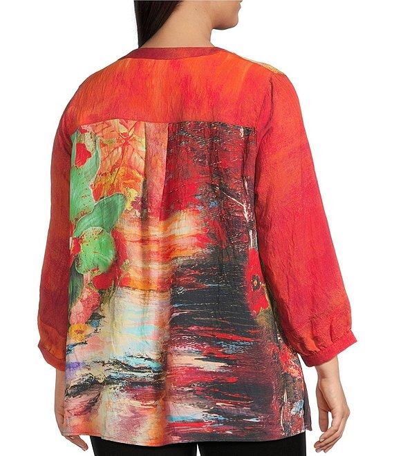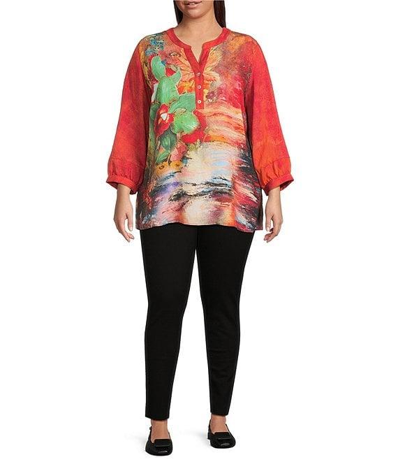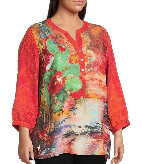 Calessa Plus Size Autumn Patchwork Partial Button-Front Placket Bracelet Sleeve Tunic