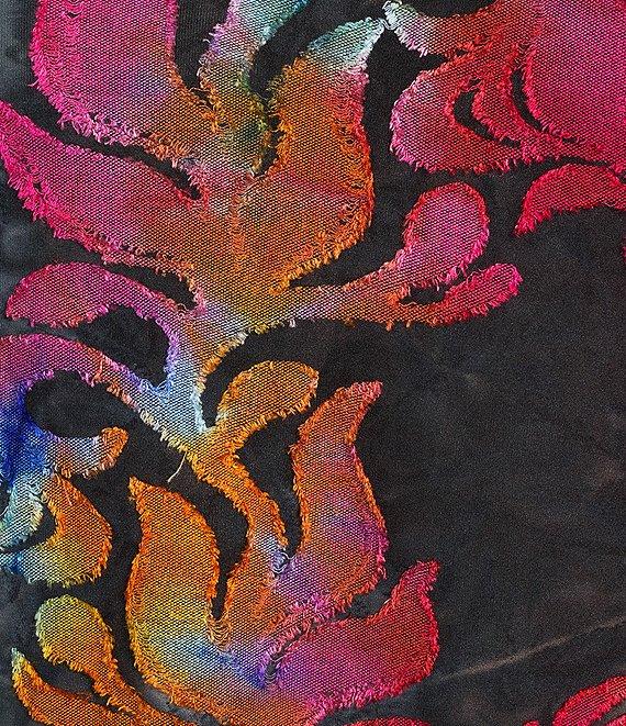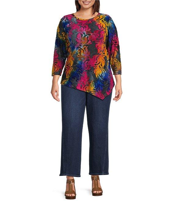 Calessa Plus Size Burnout Tie-Dye Print Crew Neck 3/4 Sleeve Asymmetric Hem Tunic