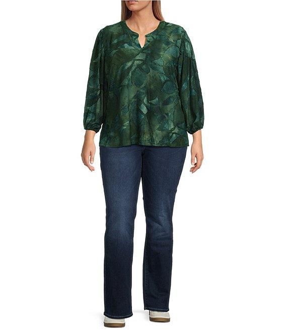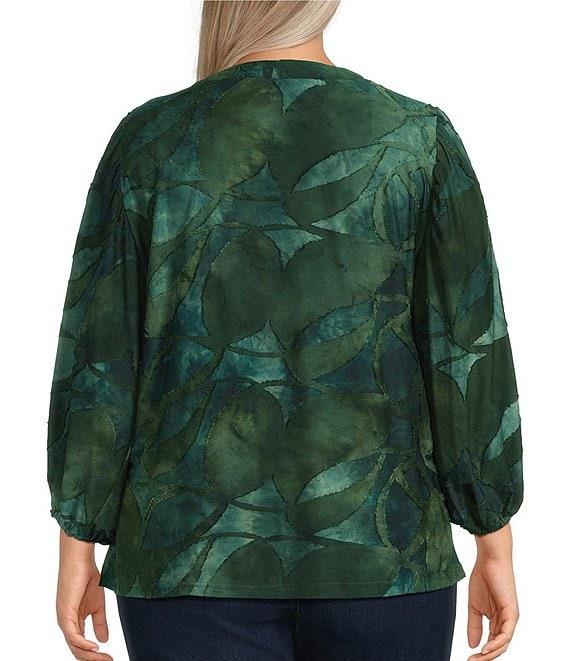 Calessa Plus Size Burnout Tie-Dye Split V-Neck Wrist Length Sleeve Tunic