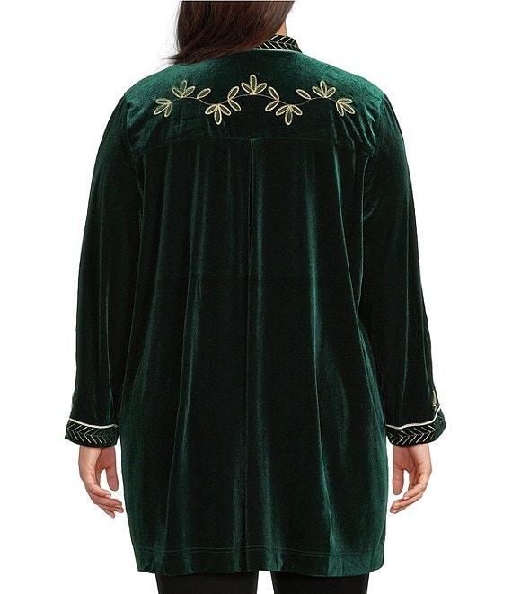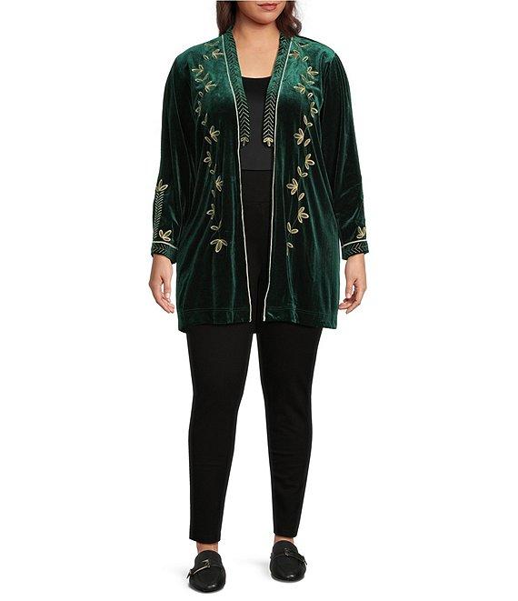 Calessa Plus Size Embroidered Long Sleeve Open-Front Velvet Cardigan