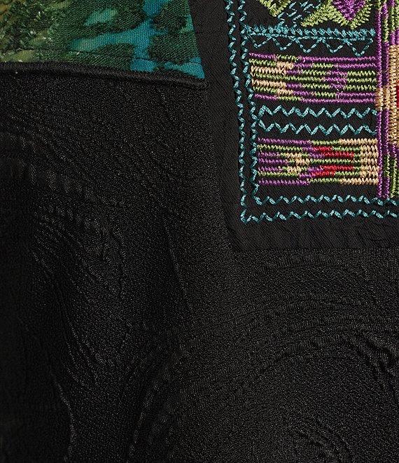 Calessa Plus Size Embroidered Patchwork Animal Print Split V-Neck 3/4 Sleeve Tunic