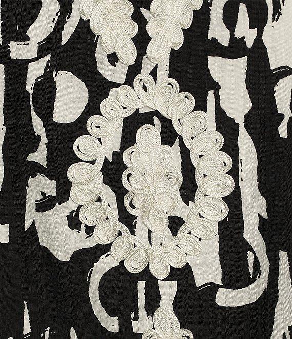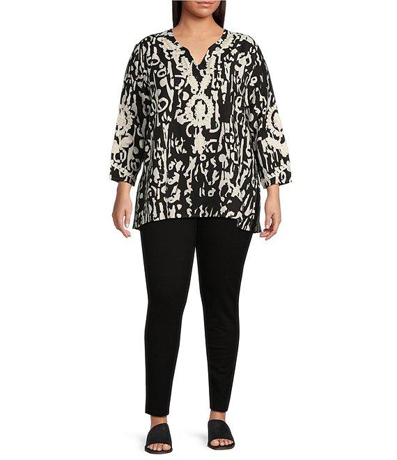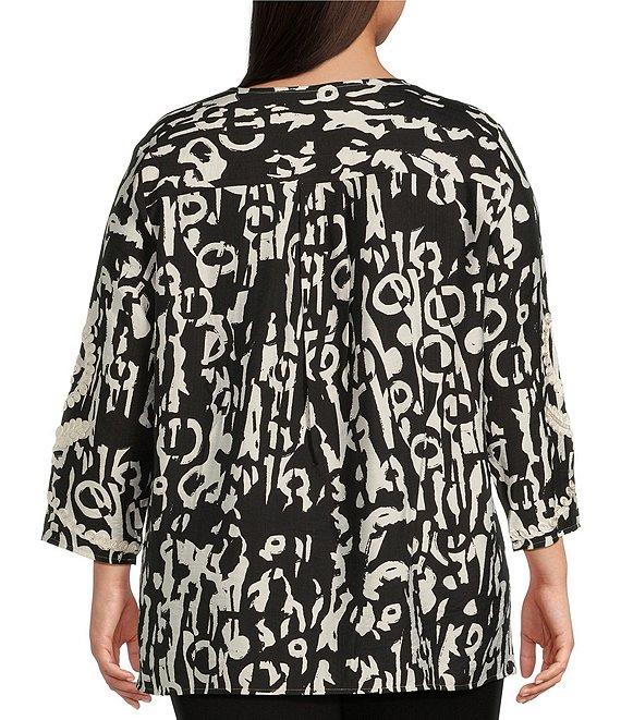Calessa Plus Size Embroidered Patchwork Pullover Split V-Neck 3/4 Sleeve Tunic
