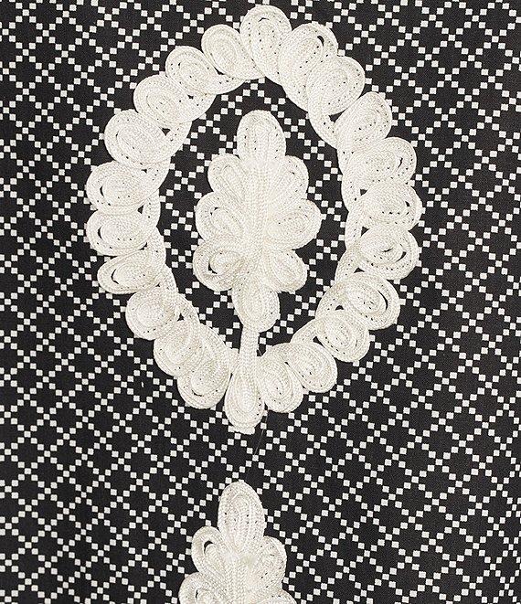 Calessa Plus Size Soutache Embroidered Geometric Print Split V-Neck 3/4 Sleeve Tunic