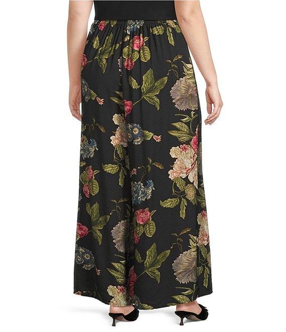 From Calessa Plus, these pants feature: Woven fabrication Wide-leg silhouette Smocked waistband Autumn garden print Loose comfort fit Side pockets Straight hem Pull-on construction Approx. 26" inseam; front rise 13", back rise 20" Polyester Hand wash Imported.