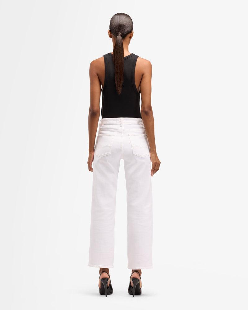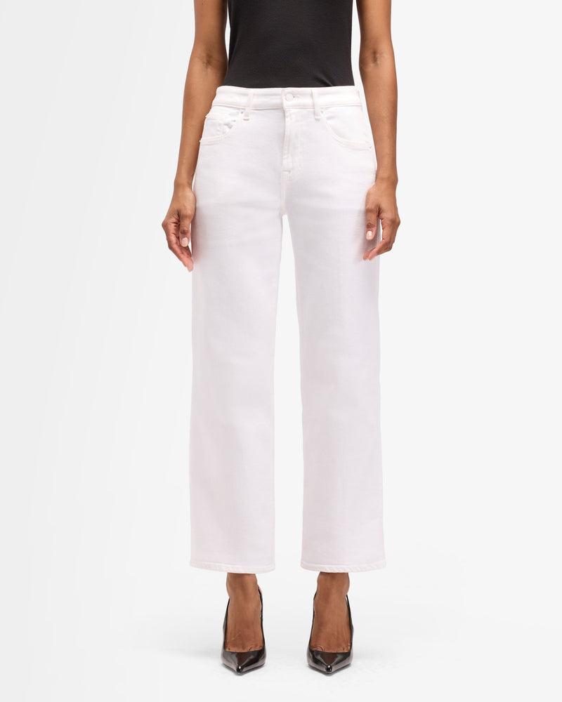 Fits like: A straight-leg fit with an ankle-length cut for a modern, versatile silhouette.Feels like: Luxe Vintage, a medium-weight denim with subtle stretch, offering the perfect balance of structure and softness for all-day ease. The Details: Please note: branded tag on back waistband may vary White wash Zip fly with