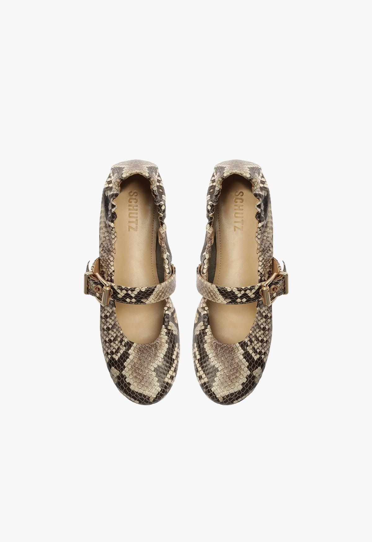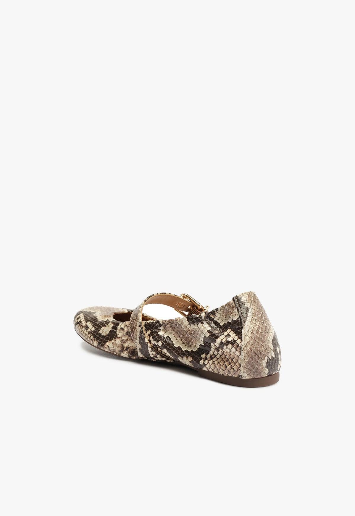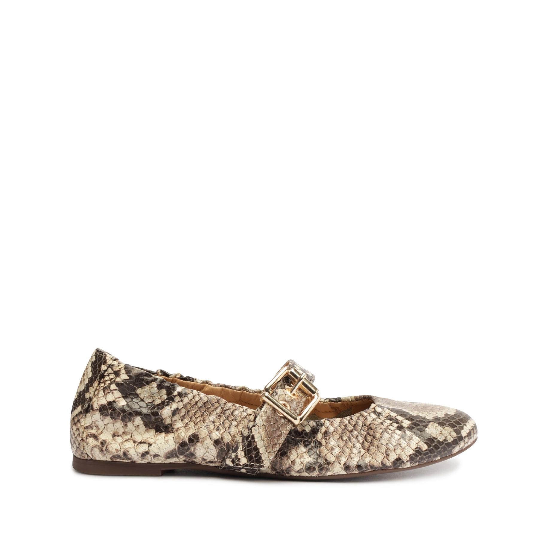 Calita Snake-Embossed Leather Flat