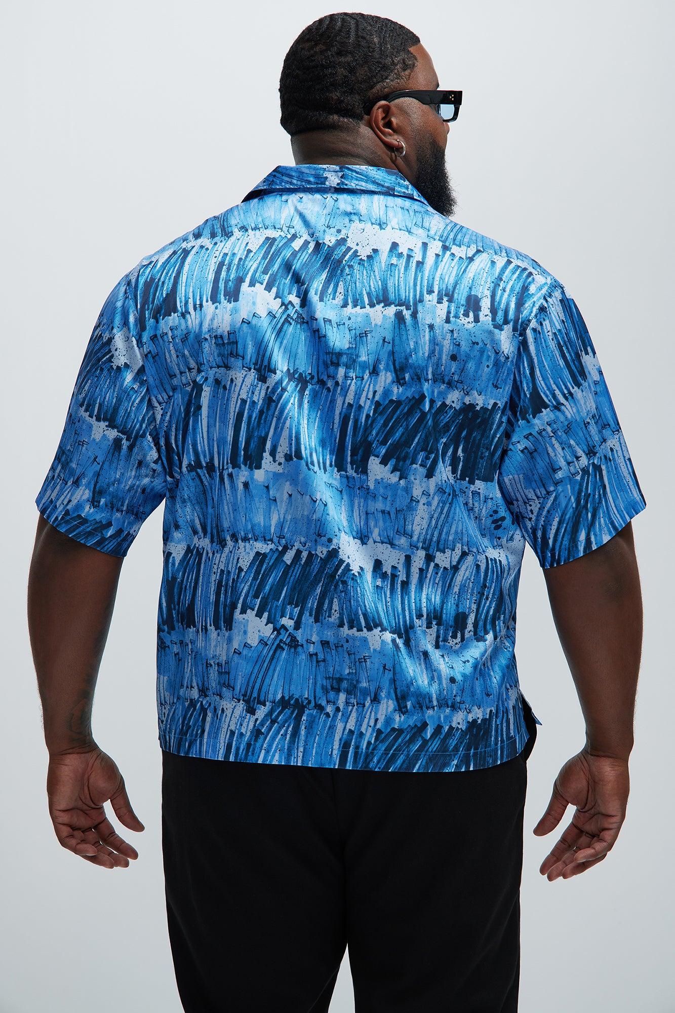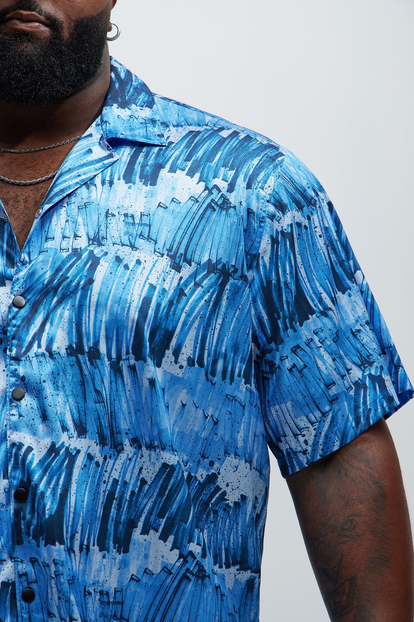 Available In Blue/combo. Fold Down Collar Front Button Closure Short Sleeve Disclaimer: Print Placement May Vary. 97% Polyester, 3% Spandex Imported