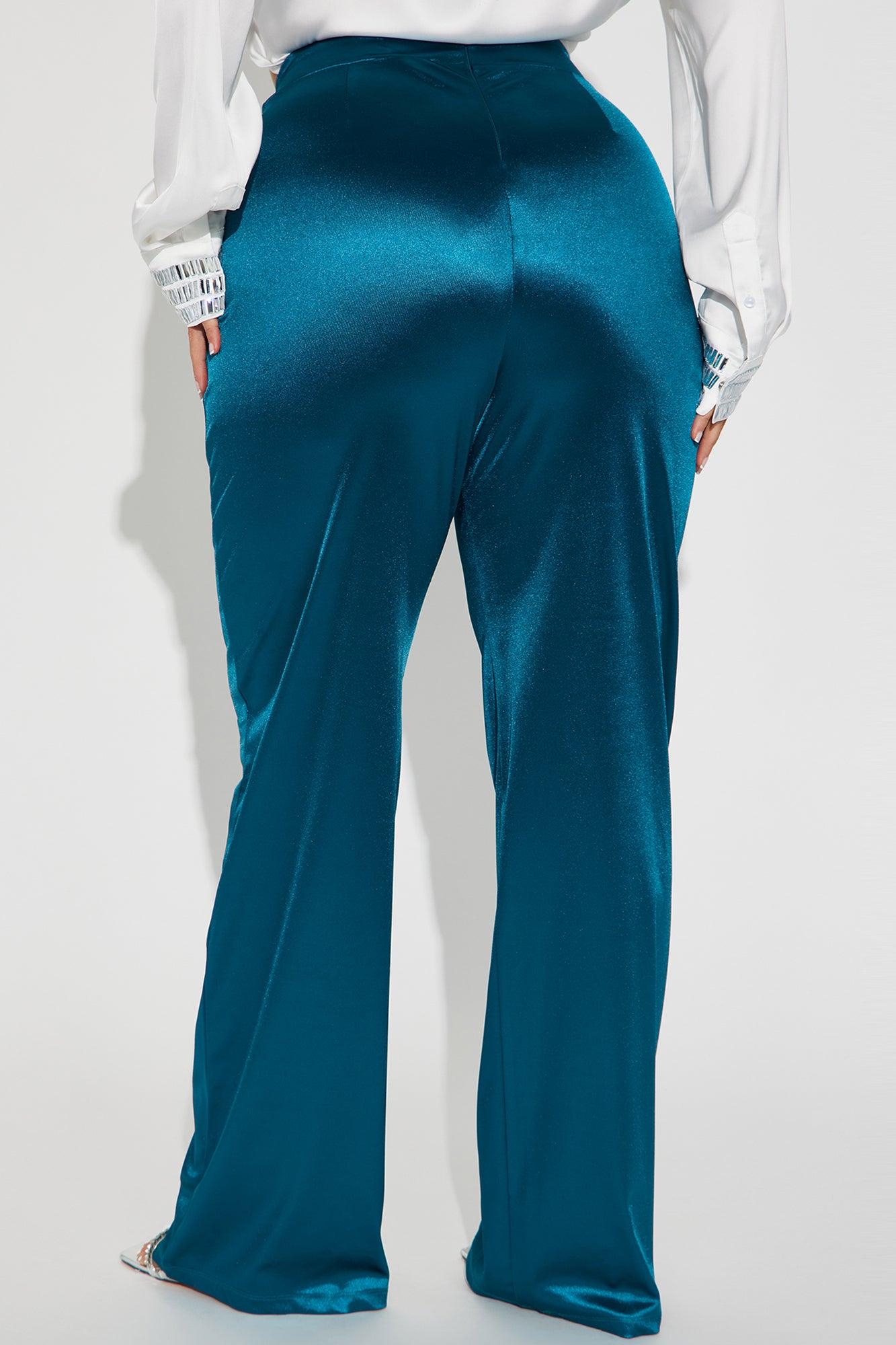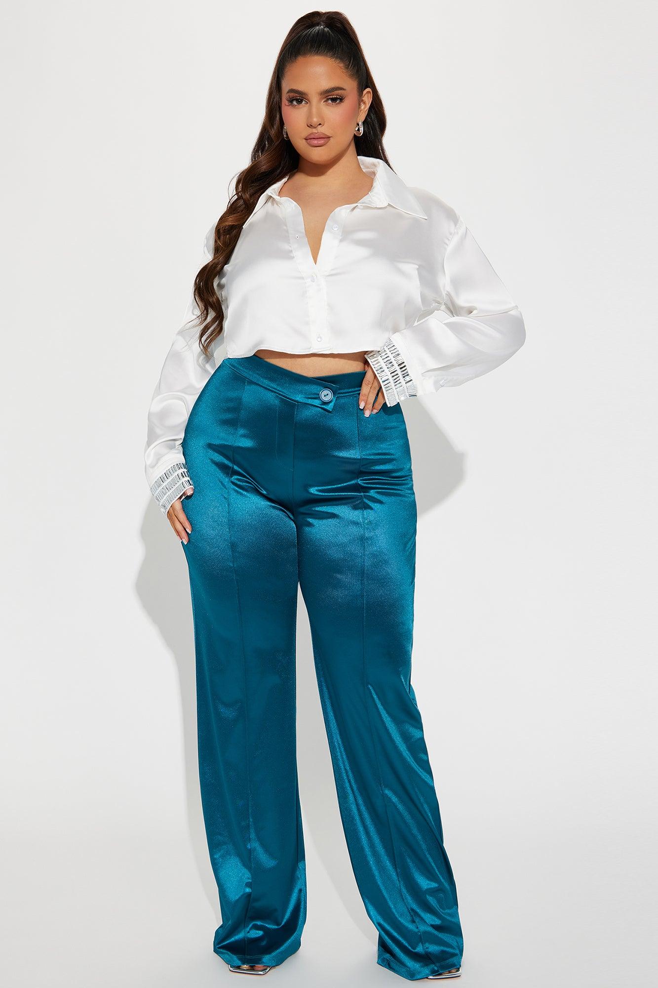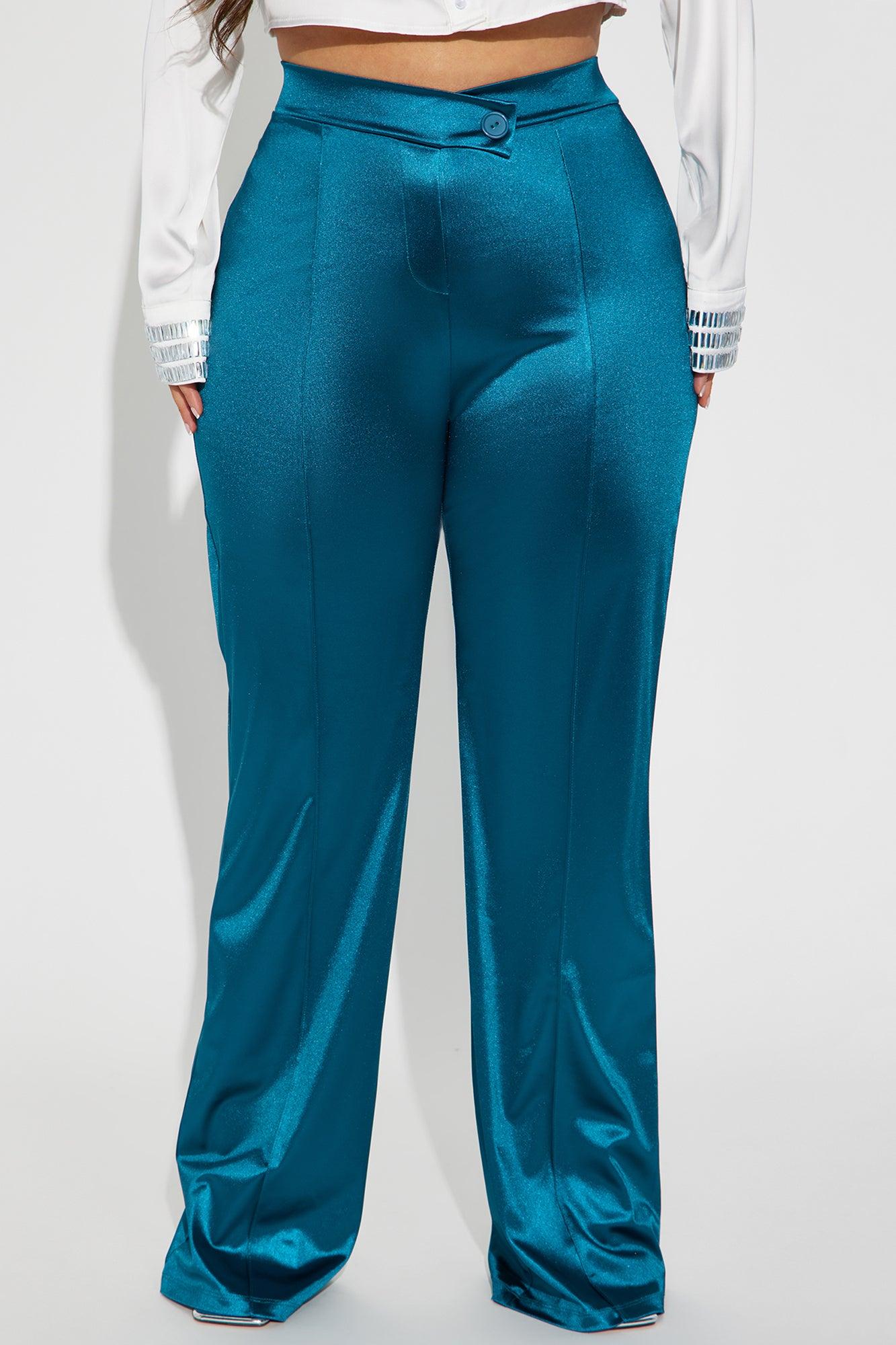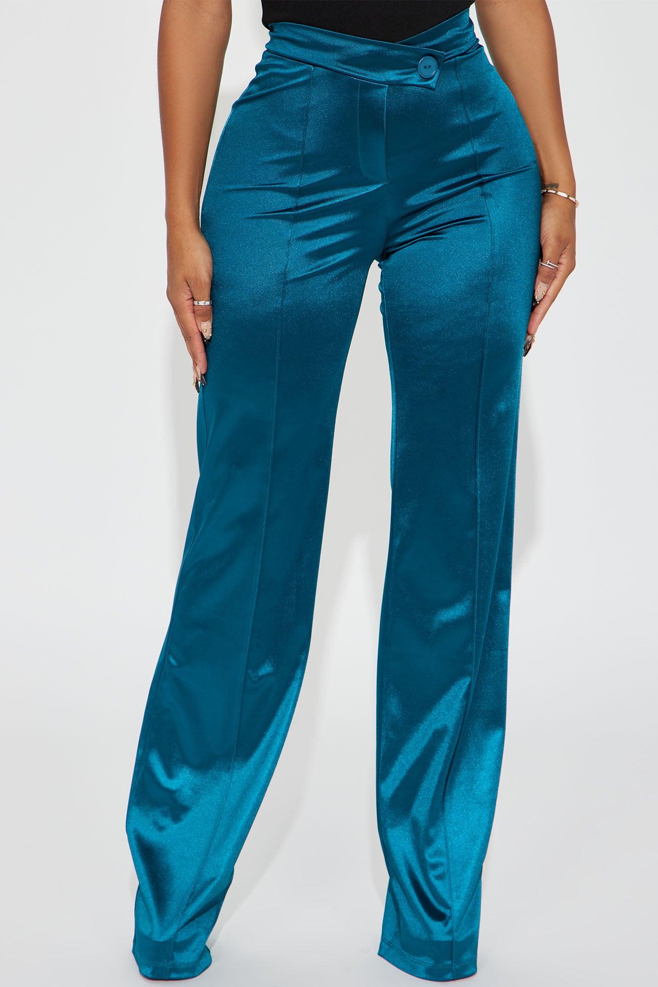 Call It Even Wide Leg Satin Dress Pants - Teal