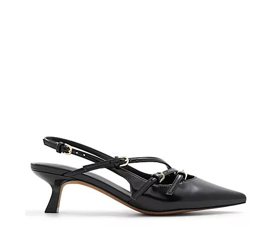 Call It Spring Reginna Womens Pump Black Buckle up for classy style with an edge in the Reginna Pump from Call It Spring. Featuring a faux leather upper , this Pump has thin straps to give off a chic touch. The B. E. D. Foam Comfort insole cushions your foot, while the kitten heel offers just enough lift. Synthetic upper Slingback buckle strap Pointed toe Foam Comfort insole 2 kitten heel