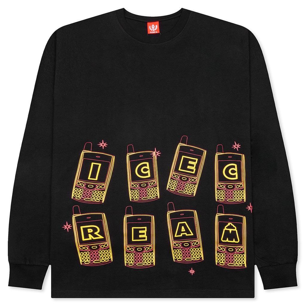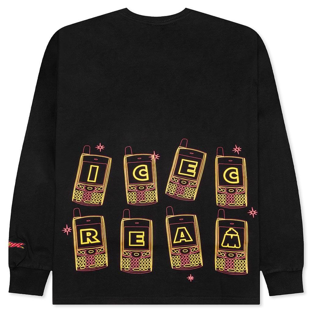 The Icecream Call My Bluff L/S Tee is a must-have streetwear silhouette. Composed of cotton, the tee spotlights ribbed detailing at the neckline and cuffs. Screen-printed branding adds to the aesthetic and wraps up the look. 100% Cotton Crew neckline Ribbed neckline Screen-printed graphics Ribbed cuffs Style No: 441-1303-01 441 1303 BLAC