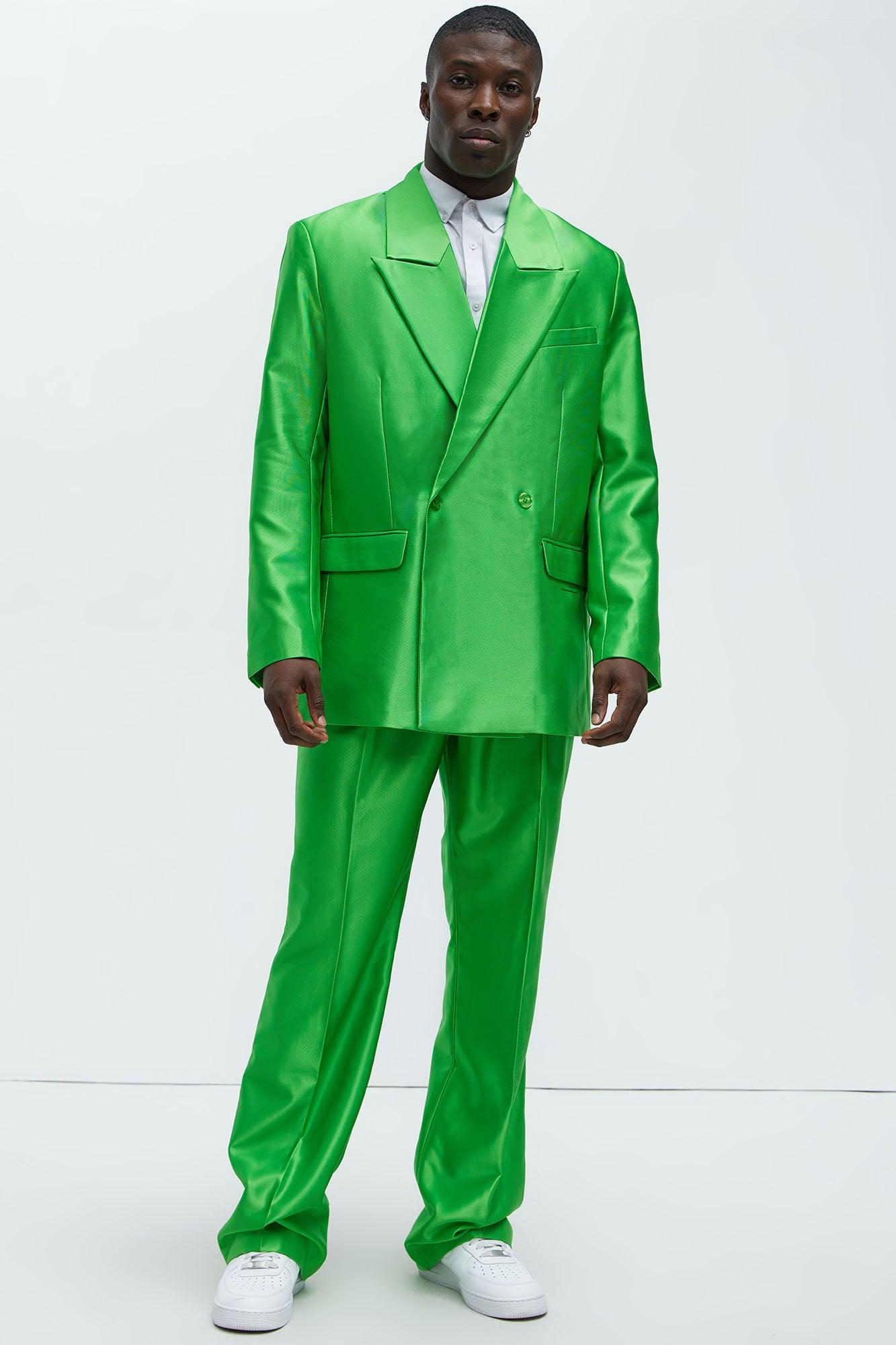 Available In Green. Boxy Fit Inside Pockets Pointed Lapels Double Breasted Button Front Front Pocket Pair With "Call On Me Relaxed Flare Trousers" Shell: 83% Polyester 17% Rayon Lining: 100% Polyester Imported