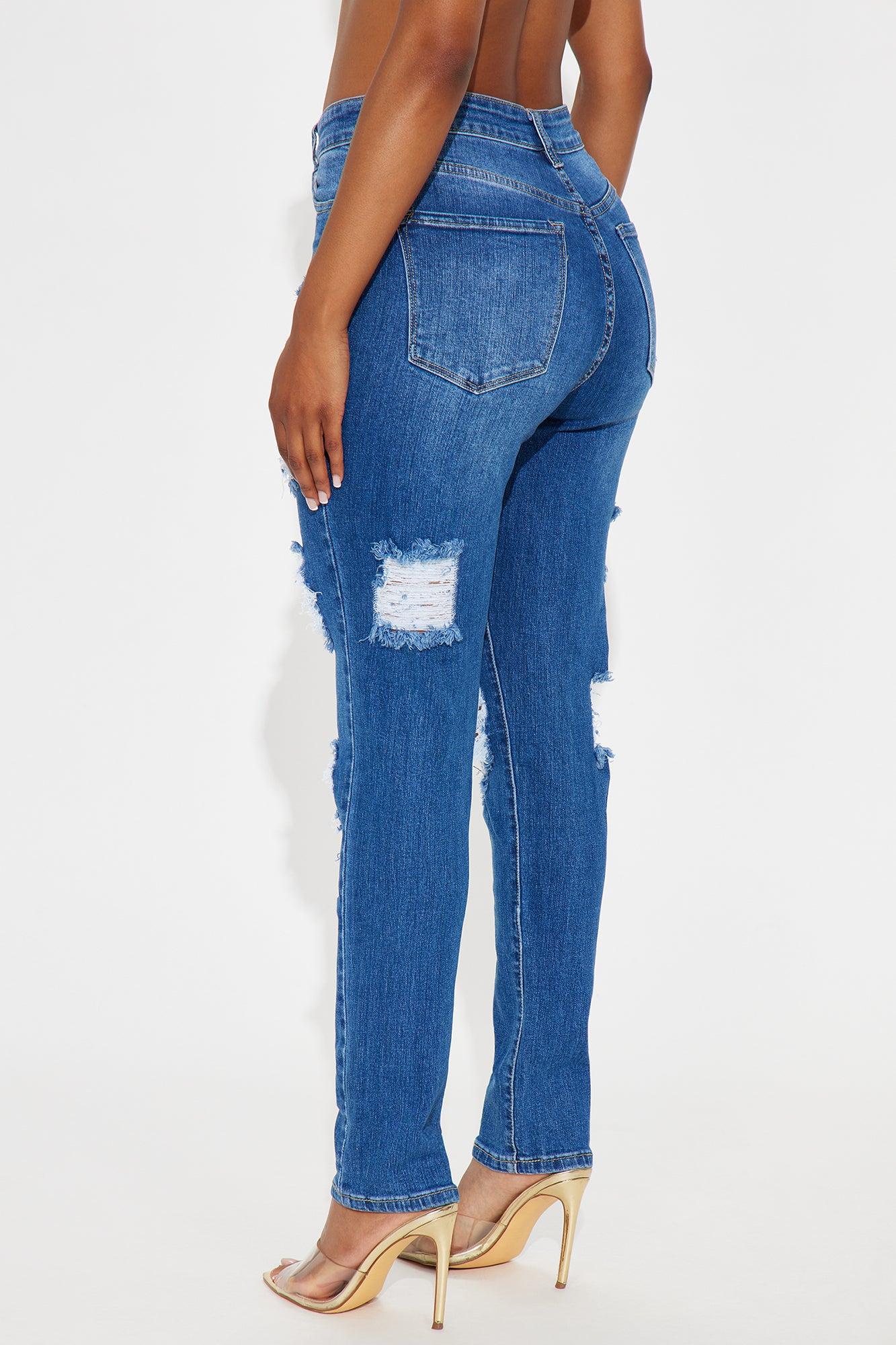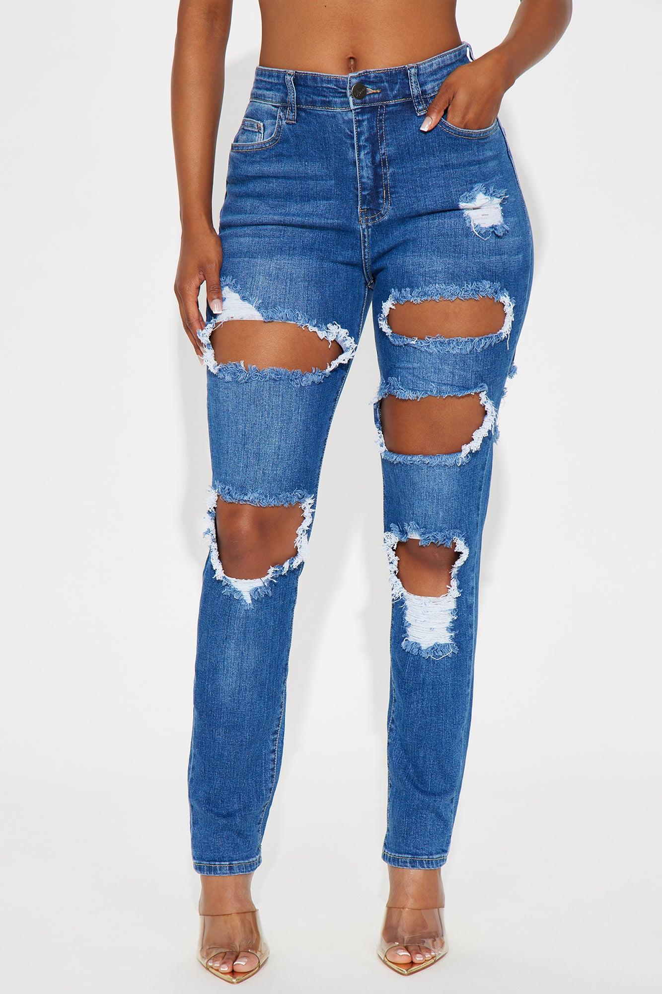Available In Medium Wash. Mom Jean 5 Pocket Ripped 11" Rise 29" Inseam Medium Stretch Disclaimer: Due To The Specialized Distressing & Wash Process, Each Garment Is Unique. Self: 99% Cotton 1% Spandex Imported California Proposition 65WARNING: Cancer and Reproductive Harm - www.P65Warnings.ca.gov.