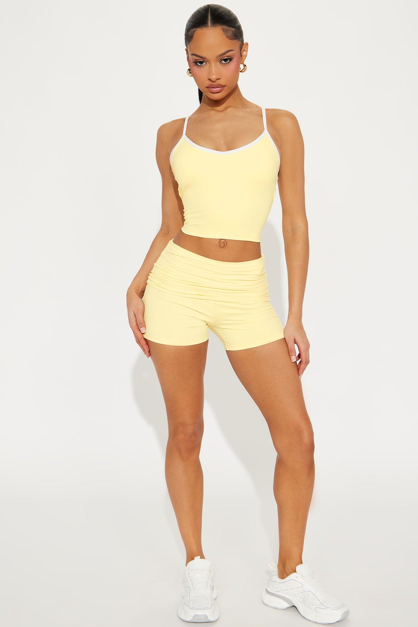 Calm And Collected Active Fold Over Short - Butter Yellow