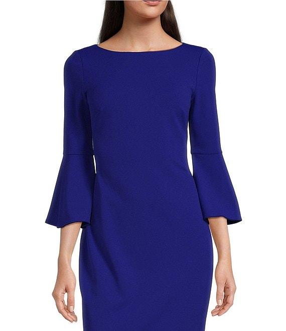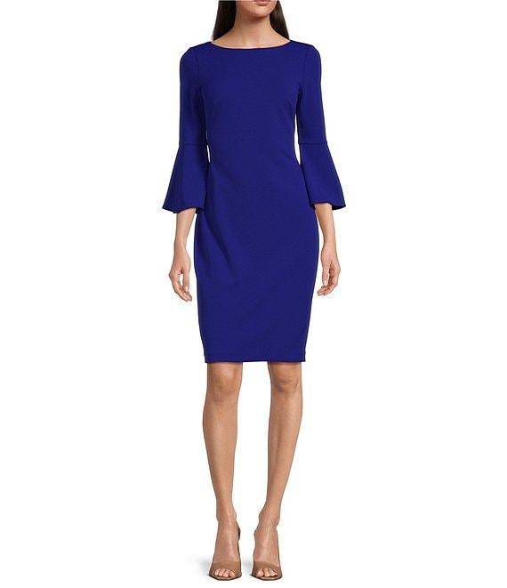 Calvin Klein 3/4 Bell Sleeve Boat Neck Sheath Dress