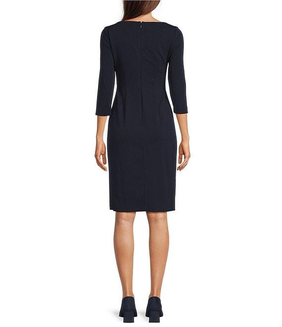 Calvin Klein Asymmetric Fold Over Neck Front Slit 3/4 Sleeve Sheath Dress