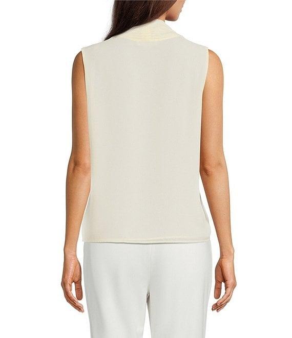 From Calvin Klein, this top features: Chiffon fabrication Tie v-neckline Attached pleated sash at neckline Sleeveless Unlined Pullover construction Approx. 23" length Polyester Dry clean Imported.