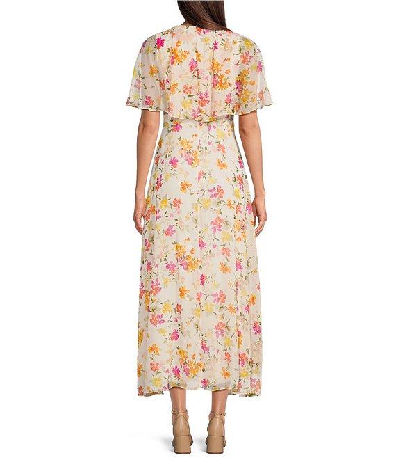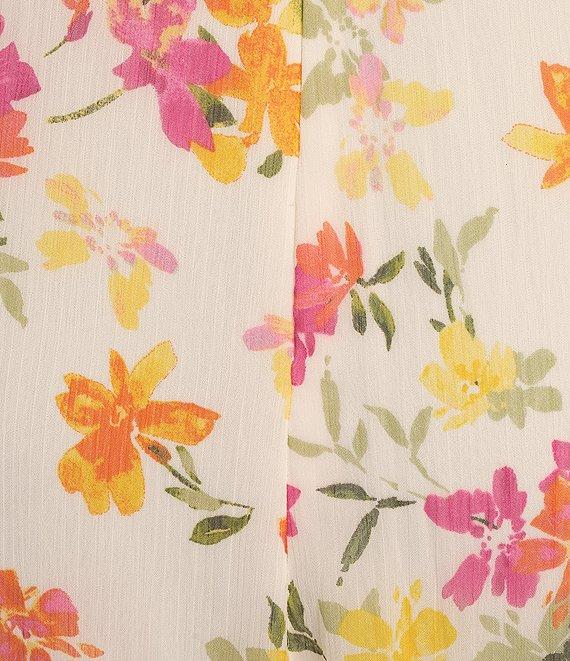 Calvin Klein Crinkled Chiffon Floral Print Midi Dress