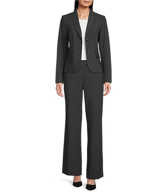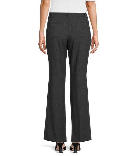 From Calvin Klein, these pants feature: trouser leg silhouette belt loops back welt pockets roomy hips straight legs with a slight flare bottom hemline double button and zip fly closure approx. 32" inseam polyester/rayon/spandex dry clean Imported.