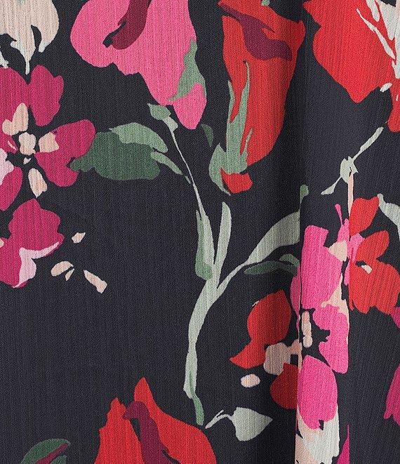 Calvin Klein Floral Print Crinkle Chiffon V-Neck 3/4 Bell Sleeve Dress