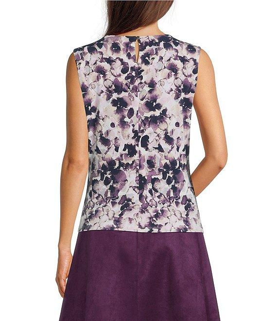 From Calvin Klein, this cami features: Matte jersey fabrication Round pleat neckline Sleeveless Printed Back keyhole and button closure Approx. 23" from shoulder to hem Polyester/spandex Dry clean Imported.