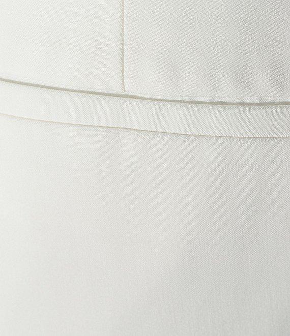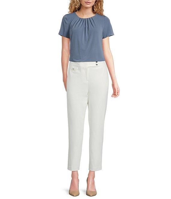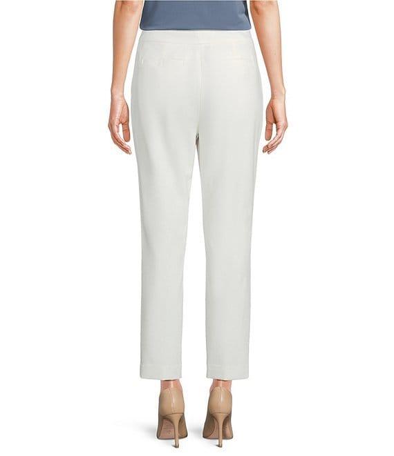 From Calvin Klein, these pants feature: Luxe fabrication Slim straight-leg silhouette Waistband sits at the hip Faux pockets Lined Front zip closure Approx. 27" inseam Rayon/recycled polyester/polyester/spandex; lining: polyester/spandex Dry clean Imported.